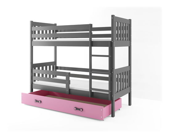 Pat etajat 80 x 190 cm Carius B (grafit + Roz) (cu somiere, saltele și sp. depozitare)
