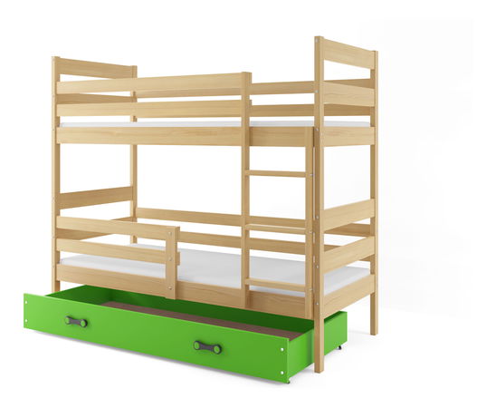 Pat etajat 80 x 190 cm Eril B (Pin + verde) (cu somiere, saltele și sp. depozitare)