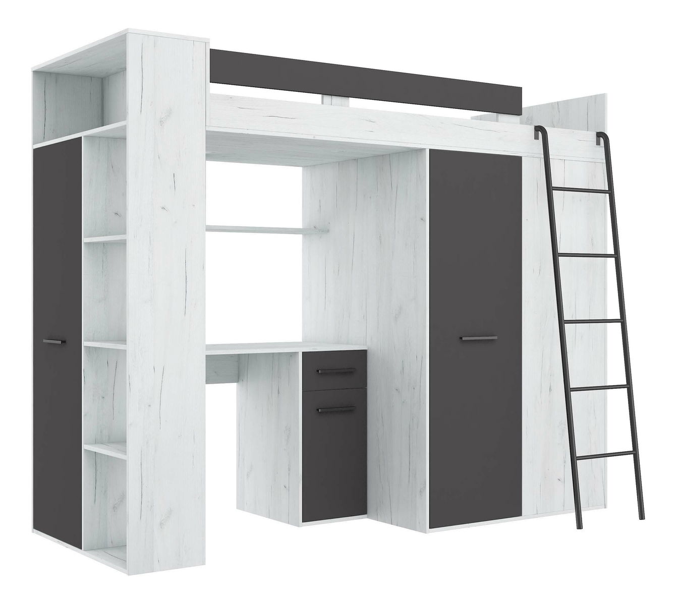 Pat etajat 90 cm Vivian (D)(cu somieră) (Stejar craft + grafit)