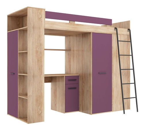 Pat etajat 90 cm Vivian (D)(cu somieră) (Stejar sonoma + Violet)