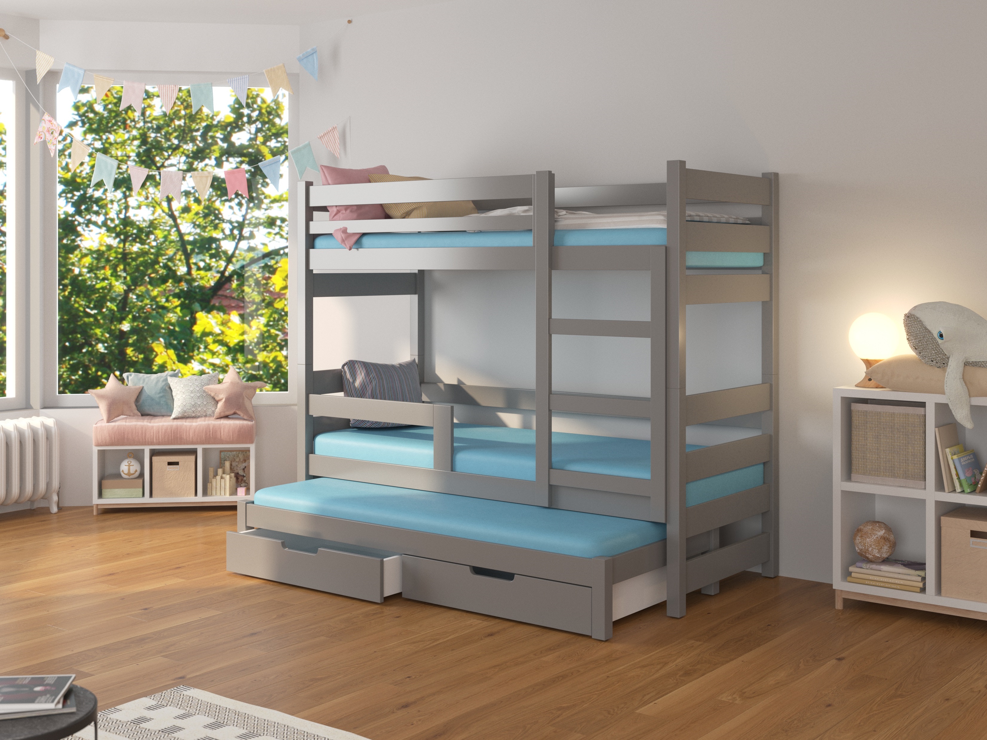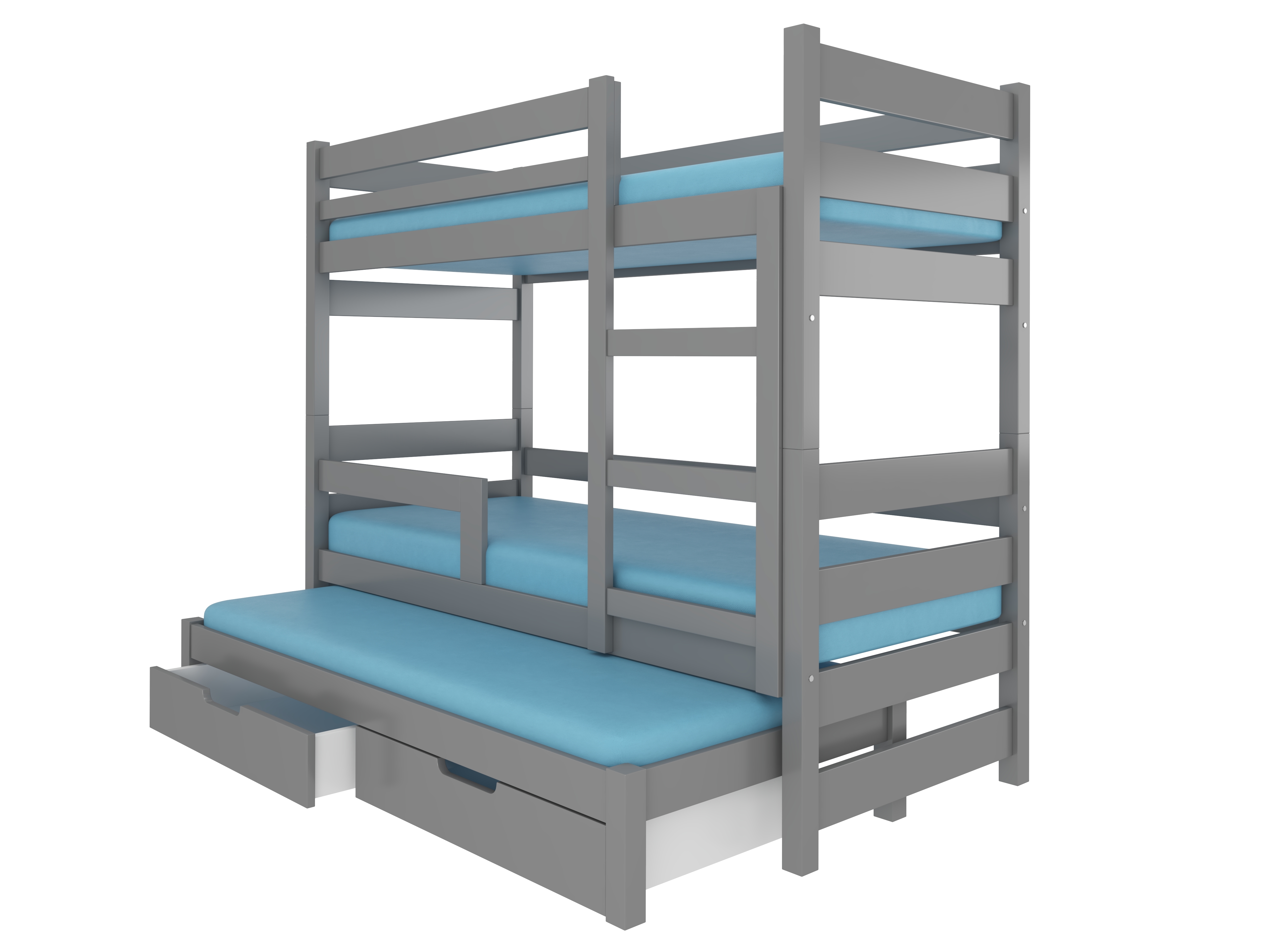 Pat etajat pentru copii 180x75 cm Karin (cu somieră și saltea) (Gri)