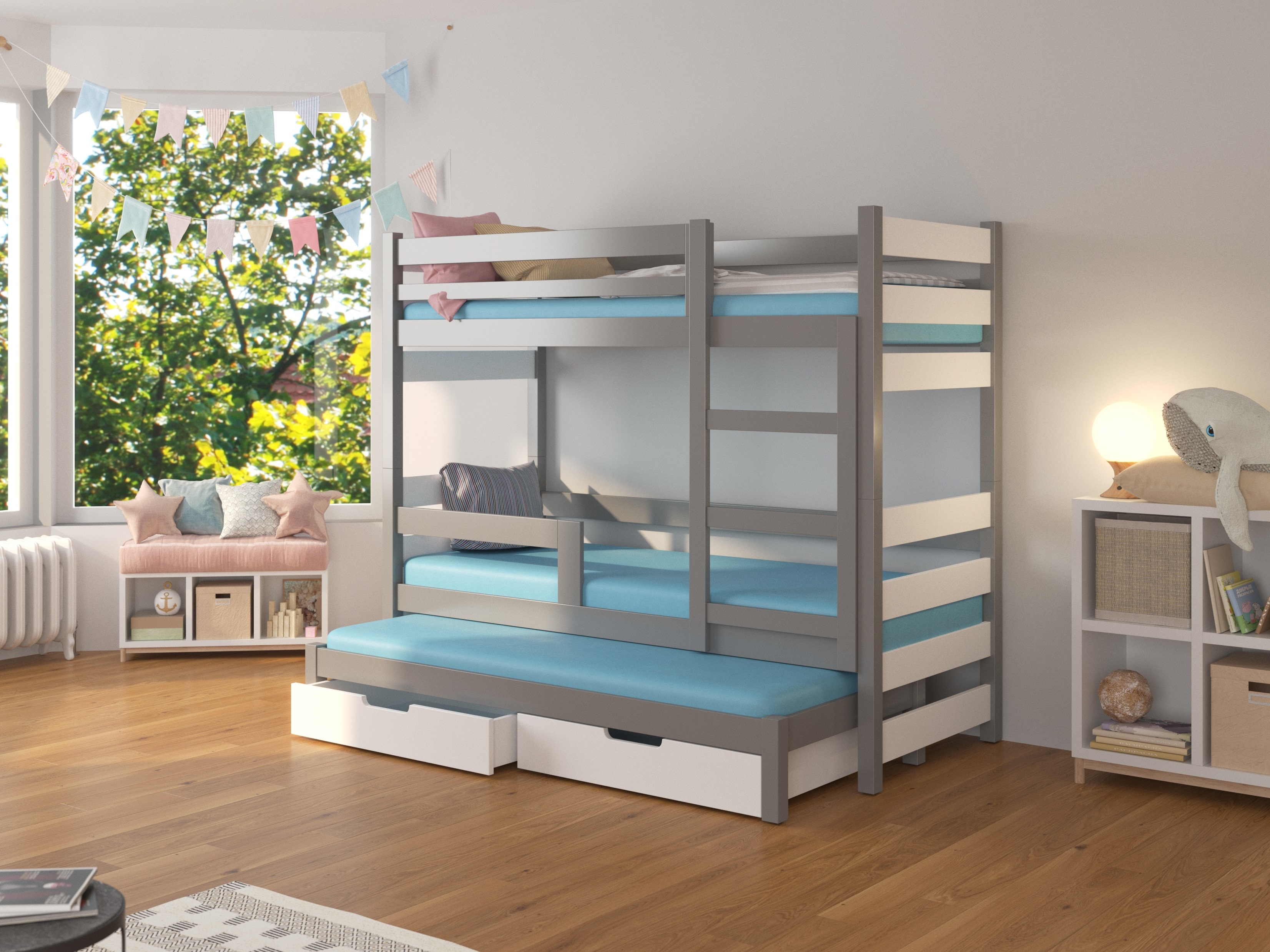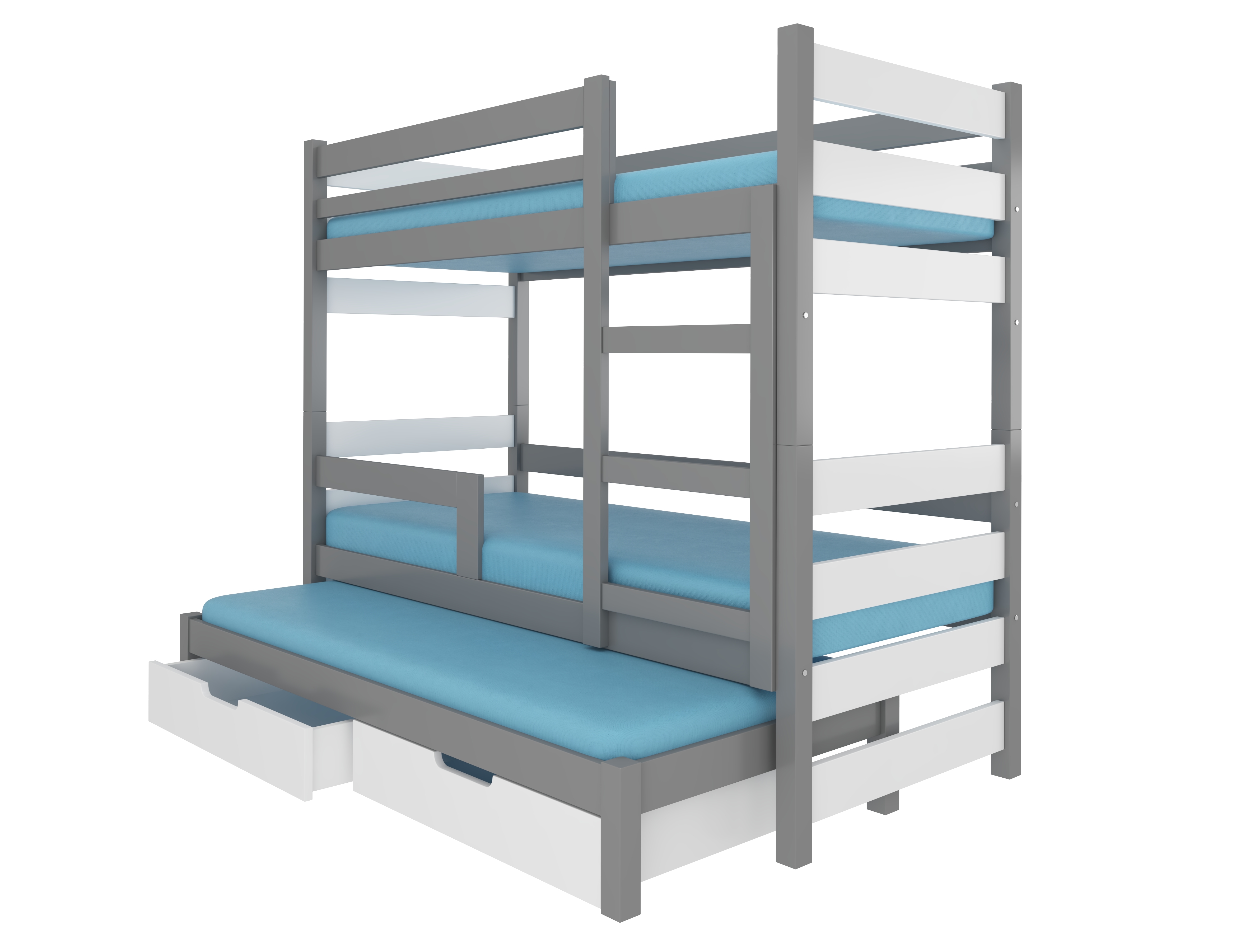 Pat etajat pentru copii 180x75 cm Karin (cu somieră și saltea) (Gri + Alb)