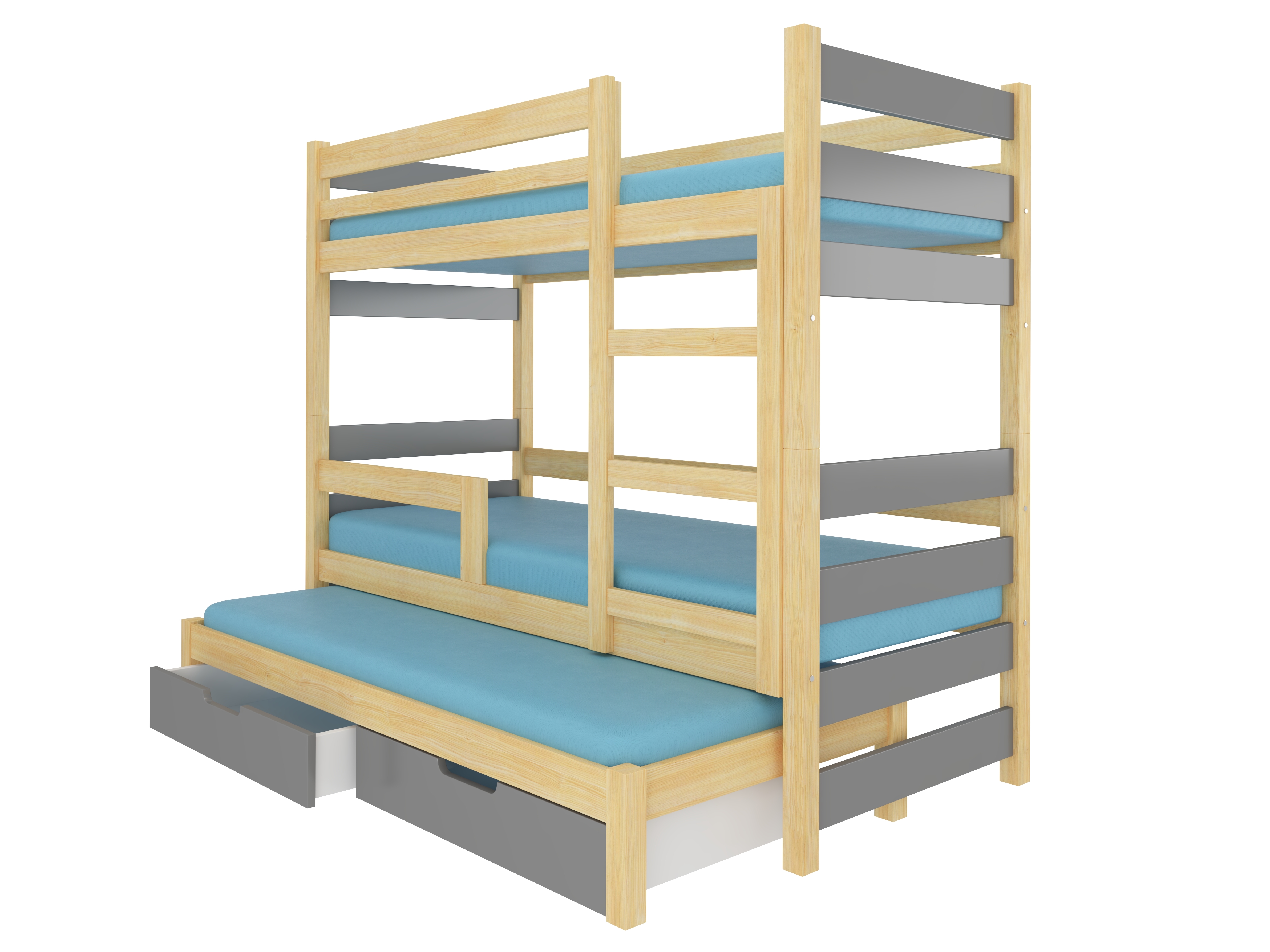 Pat etajat pentru copii 180x75 cm Karin (cu somieră și saltea) (Pin + Gri)