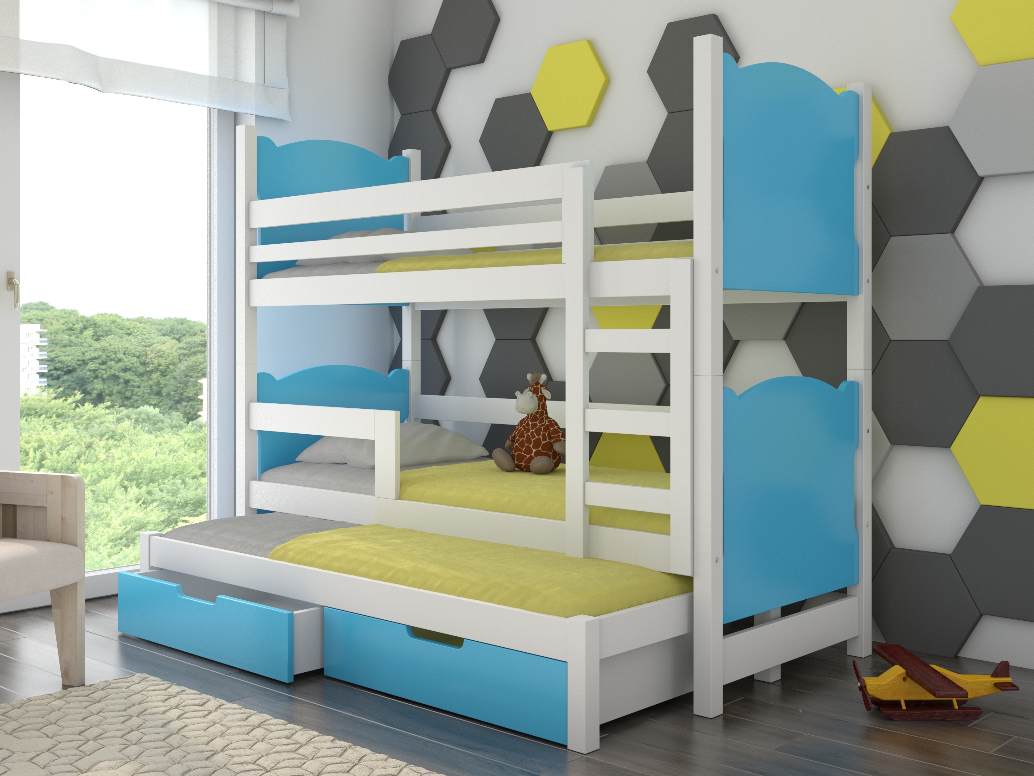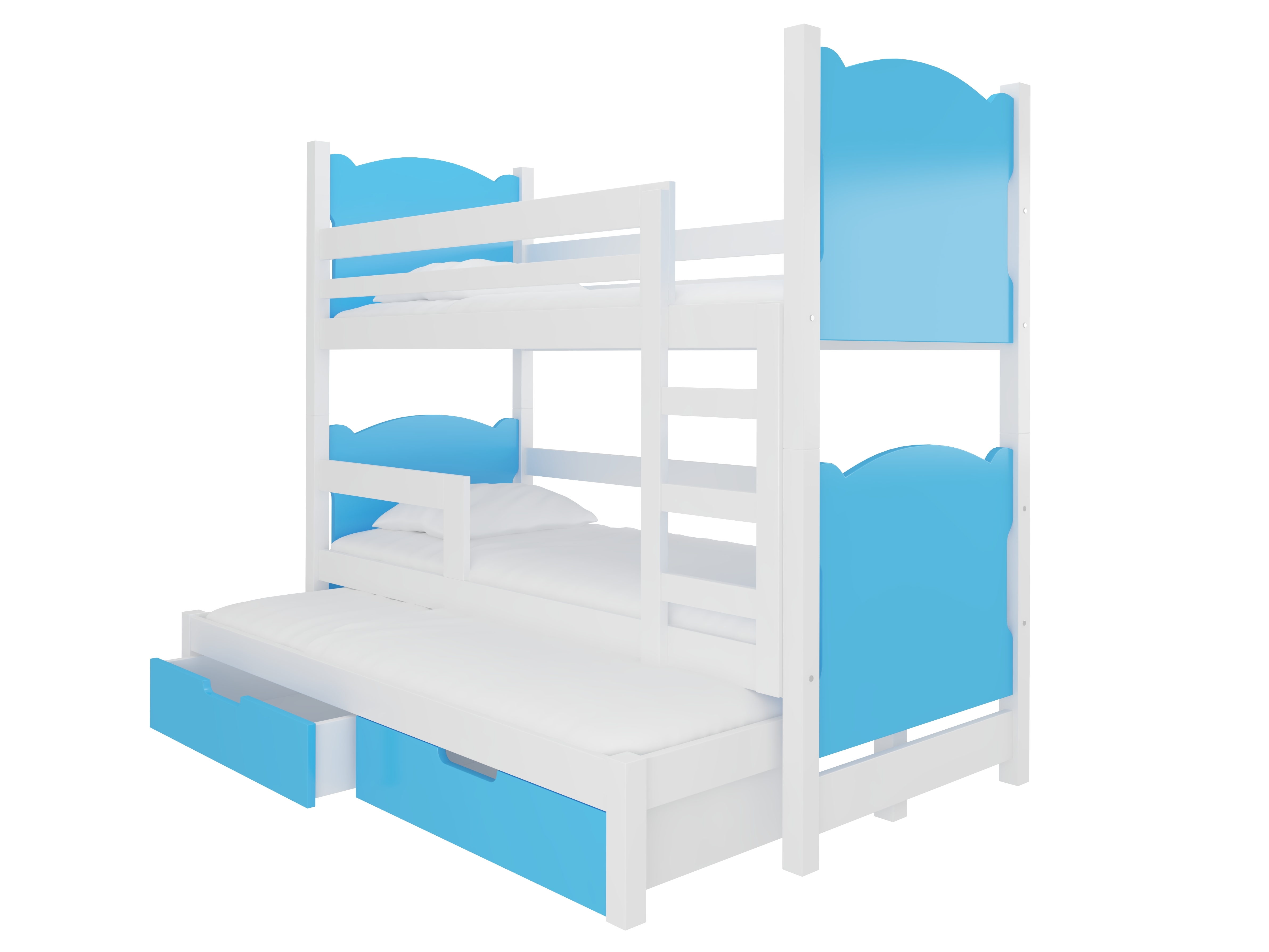 Pat etajat pentru copii 180x75 cm Lukrécia (cu somieră și saltea) (Alb + Albastru)