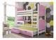 Pat etajat pentru copii 180x75 cm Lukrécia (cu somieră și saltea) (Alb + Roz)