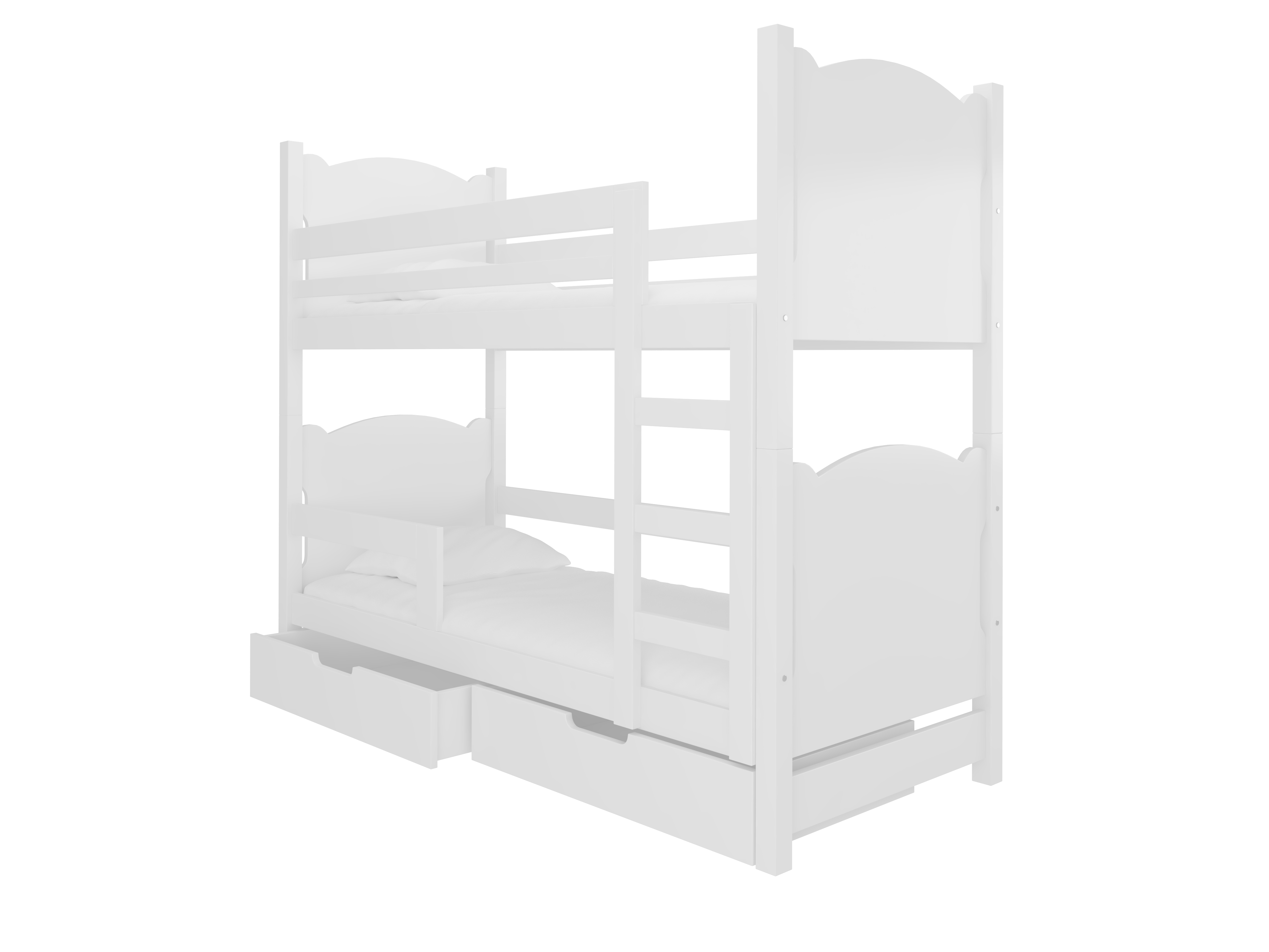 Pat etajat pentru copii 180x75 cm Marryann (cu somieră și saltea) (Alb)