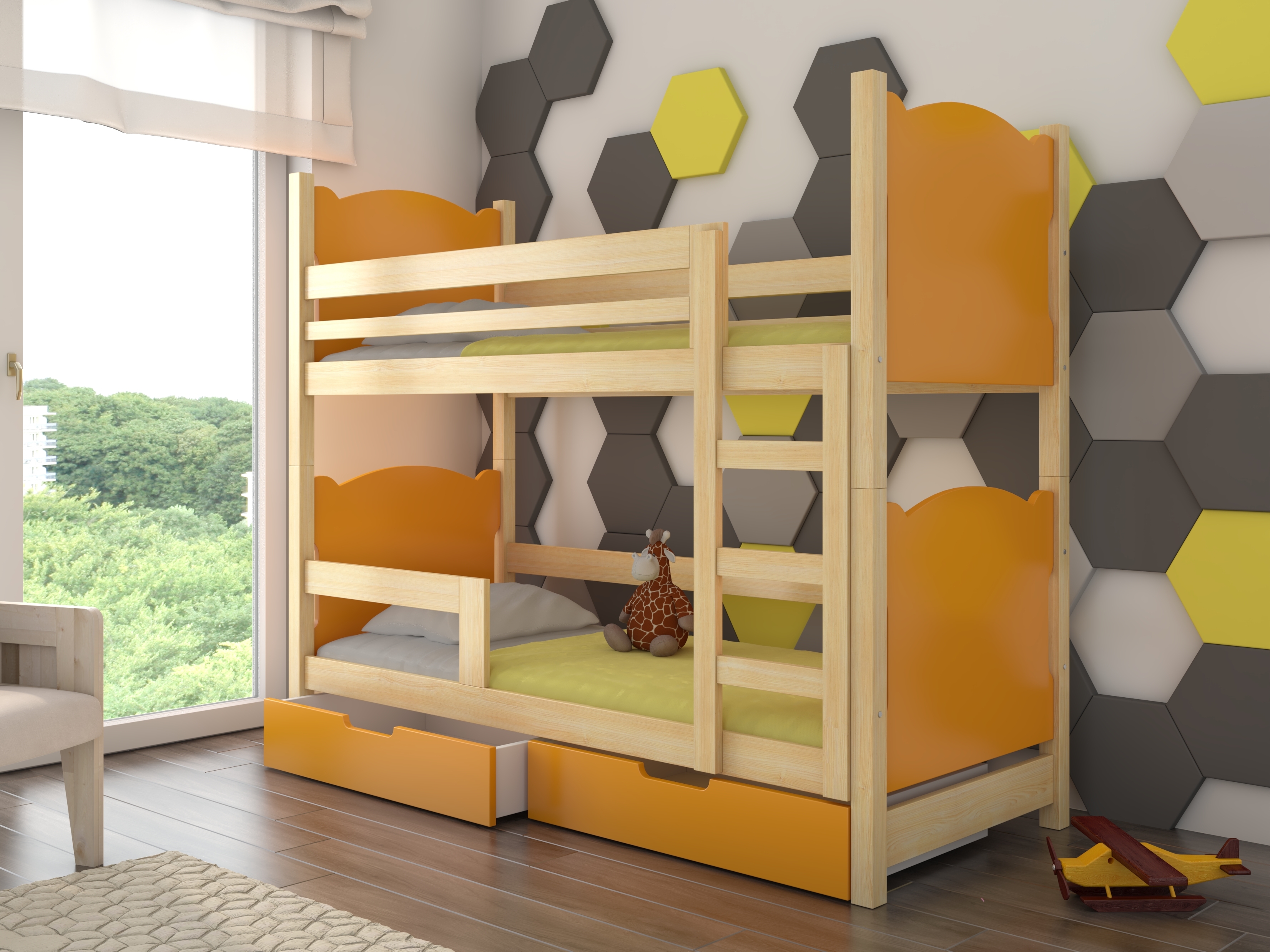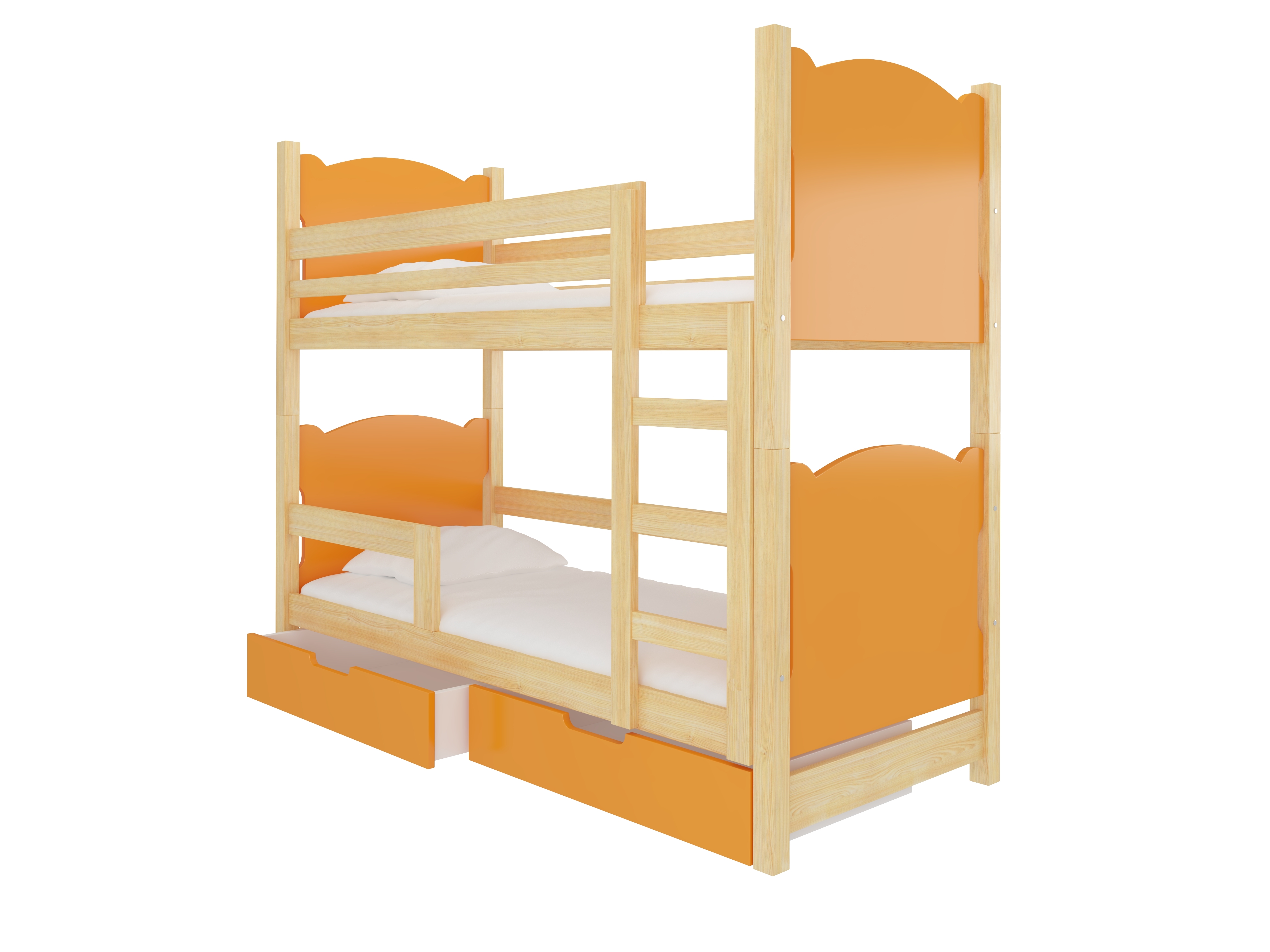Pat etajat pentru copii 180x75 cm Marryann (cu somieră și saltea) (Pin + Portocaliu)