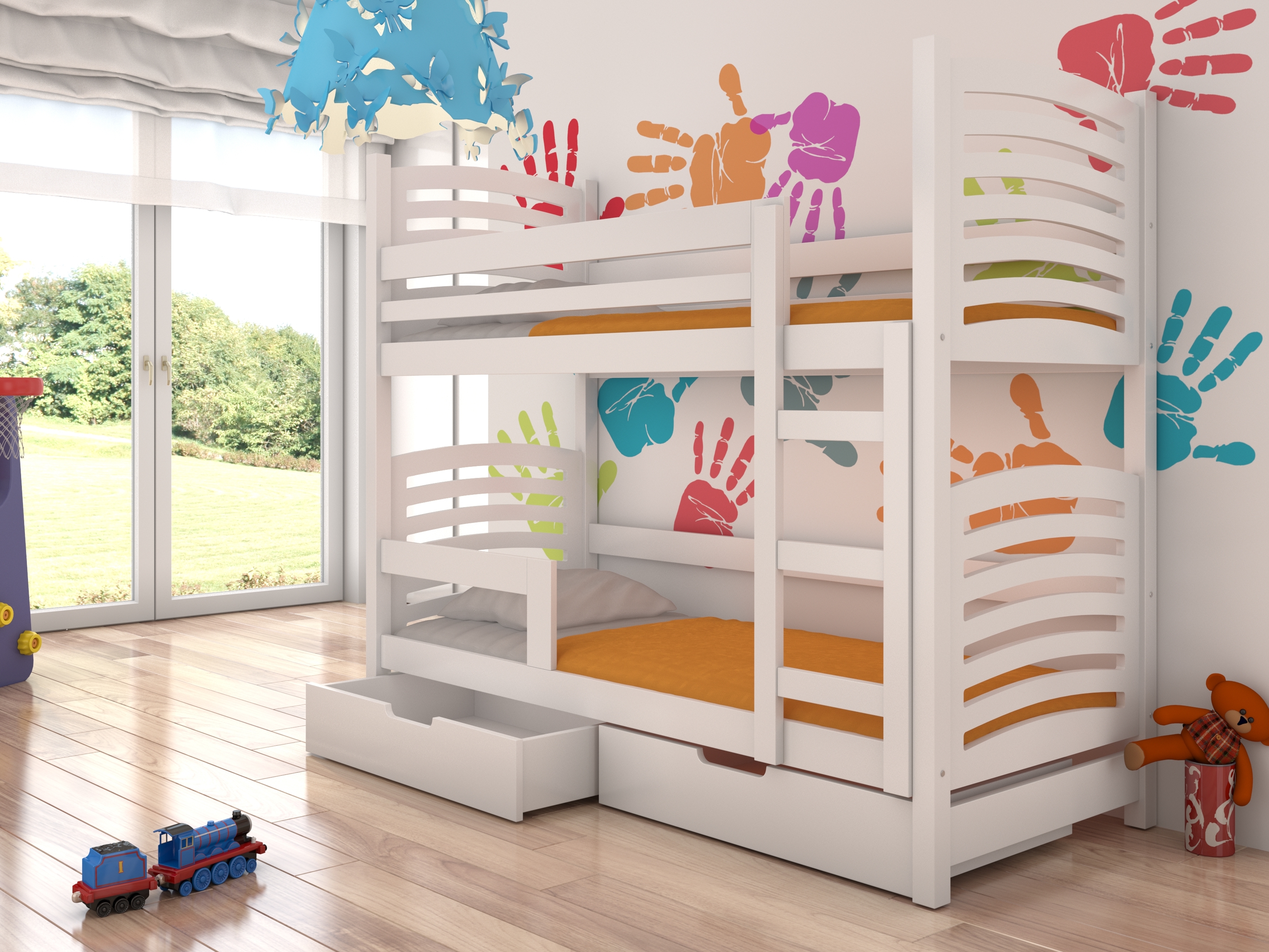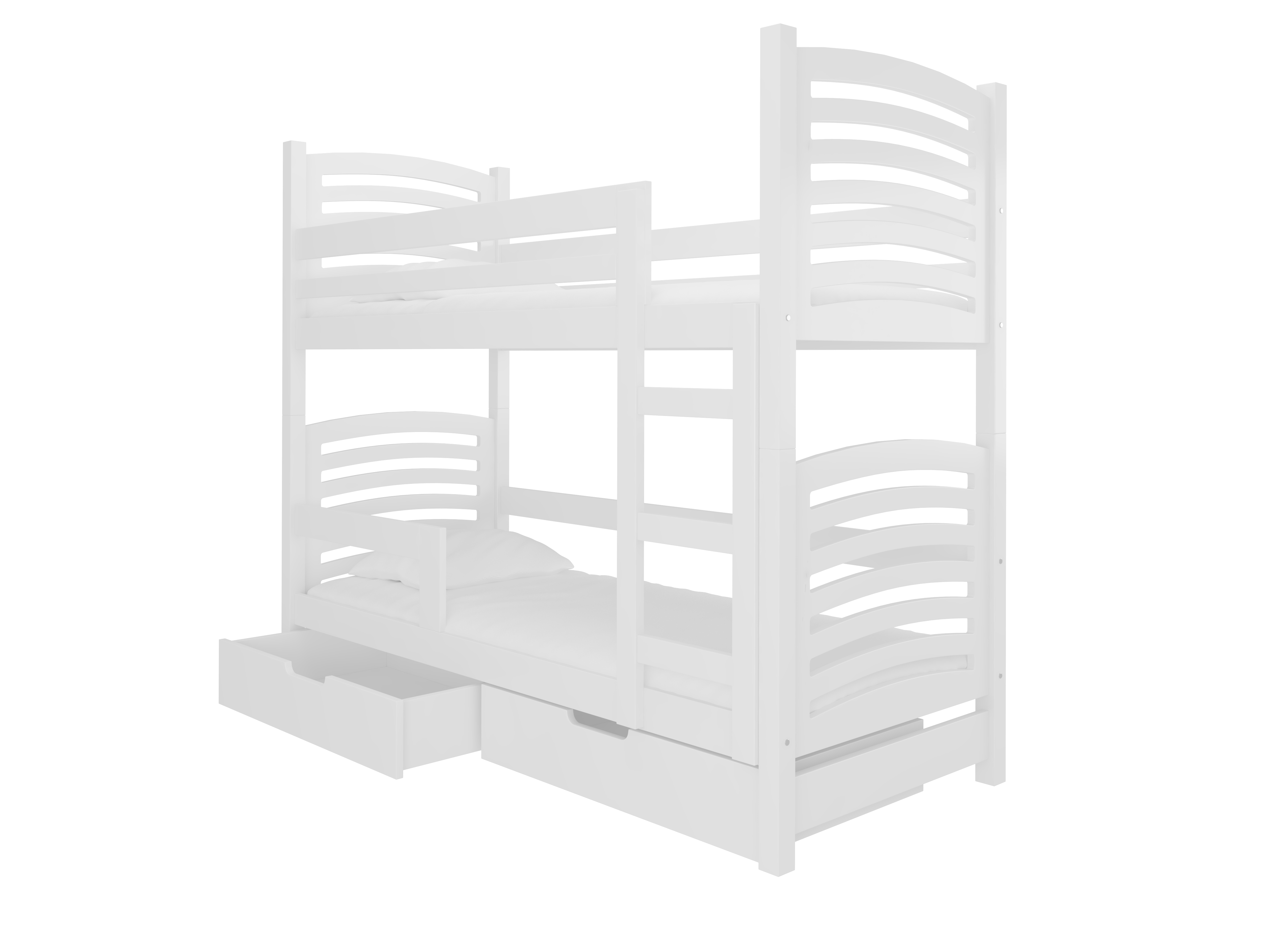 Pat etajat pentru copii 180x75 cm Oxana (cu somieră și saltea) (Alb)