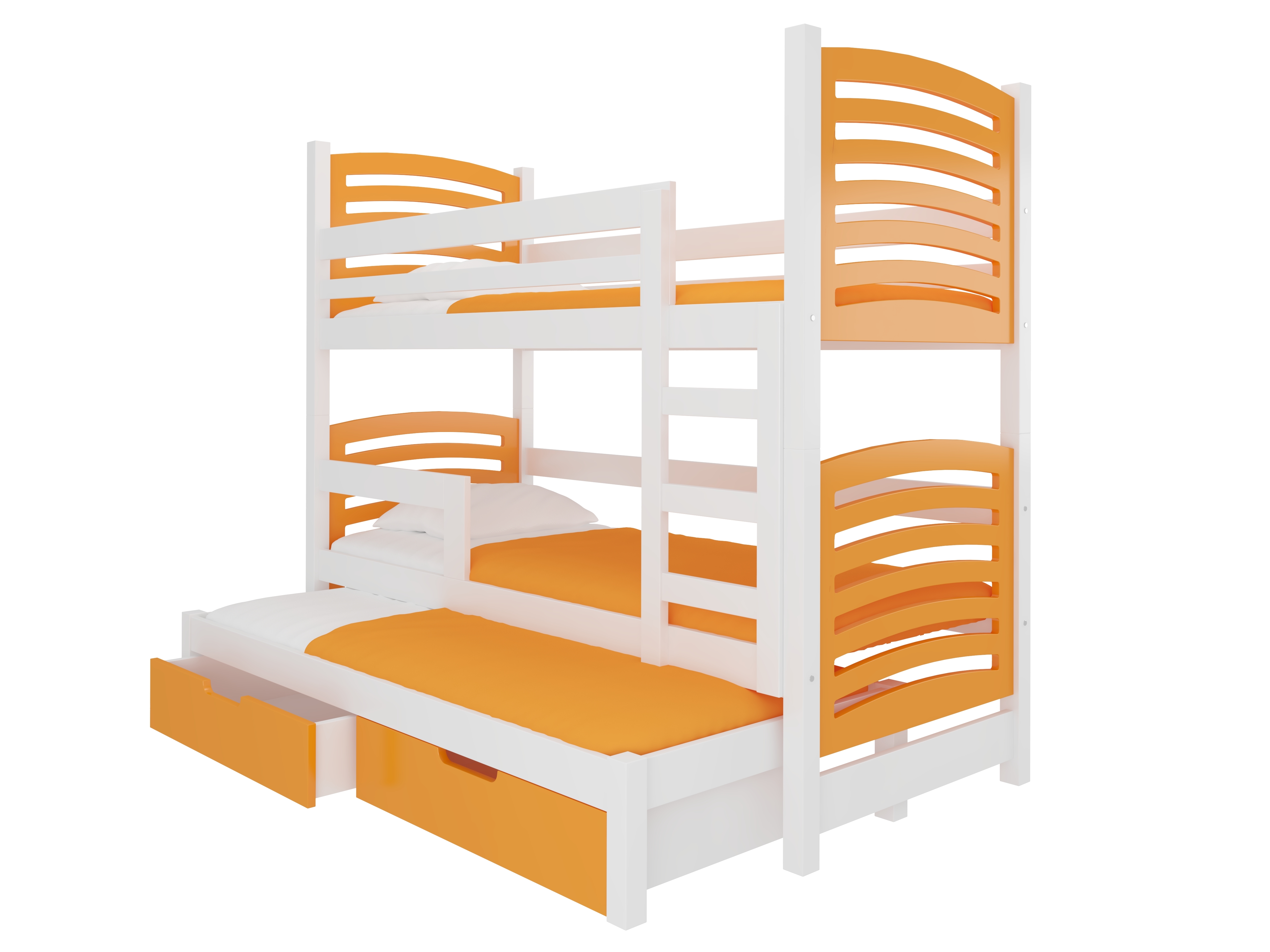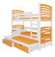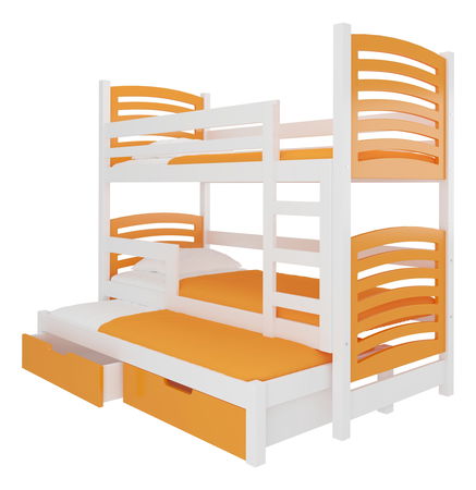 Pat etajat pentru copii 180x75 cm Stanislava (cu somieră și saltea) (Alb + Portocaliu)
