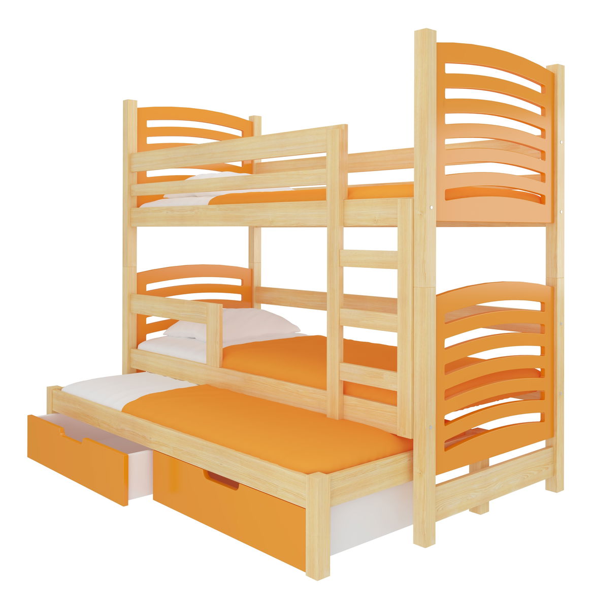 Pat etajat pentru copii 180x75 cm Stanislava (cu somieră și saltea) (Pin + Portocaliu)
