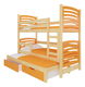 lemn de pin, mijlocul patului și tăblile sertarelor sunt din placă MDF