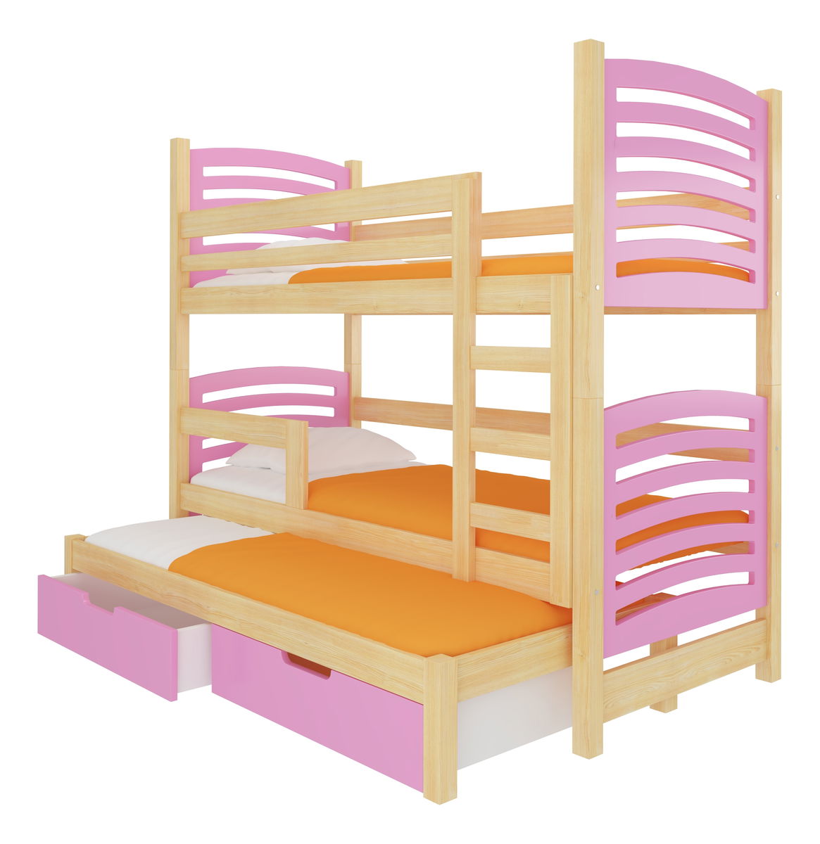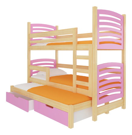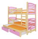 Pat etajat pentru copii 180x75 cm Stanislava (cu somieră și saltea) (Pin + Roz)