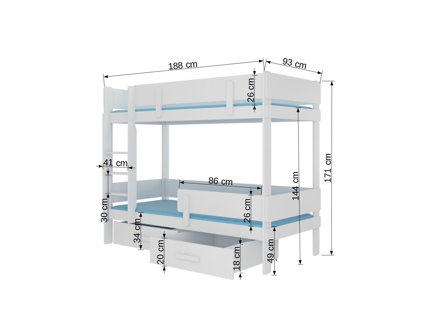 Pat etajat pentru copii 180x80 cm Ellen (cu somieră și saltea) (Alb + Stejar artisan)