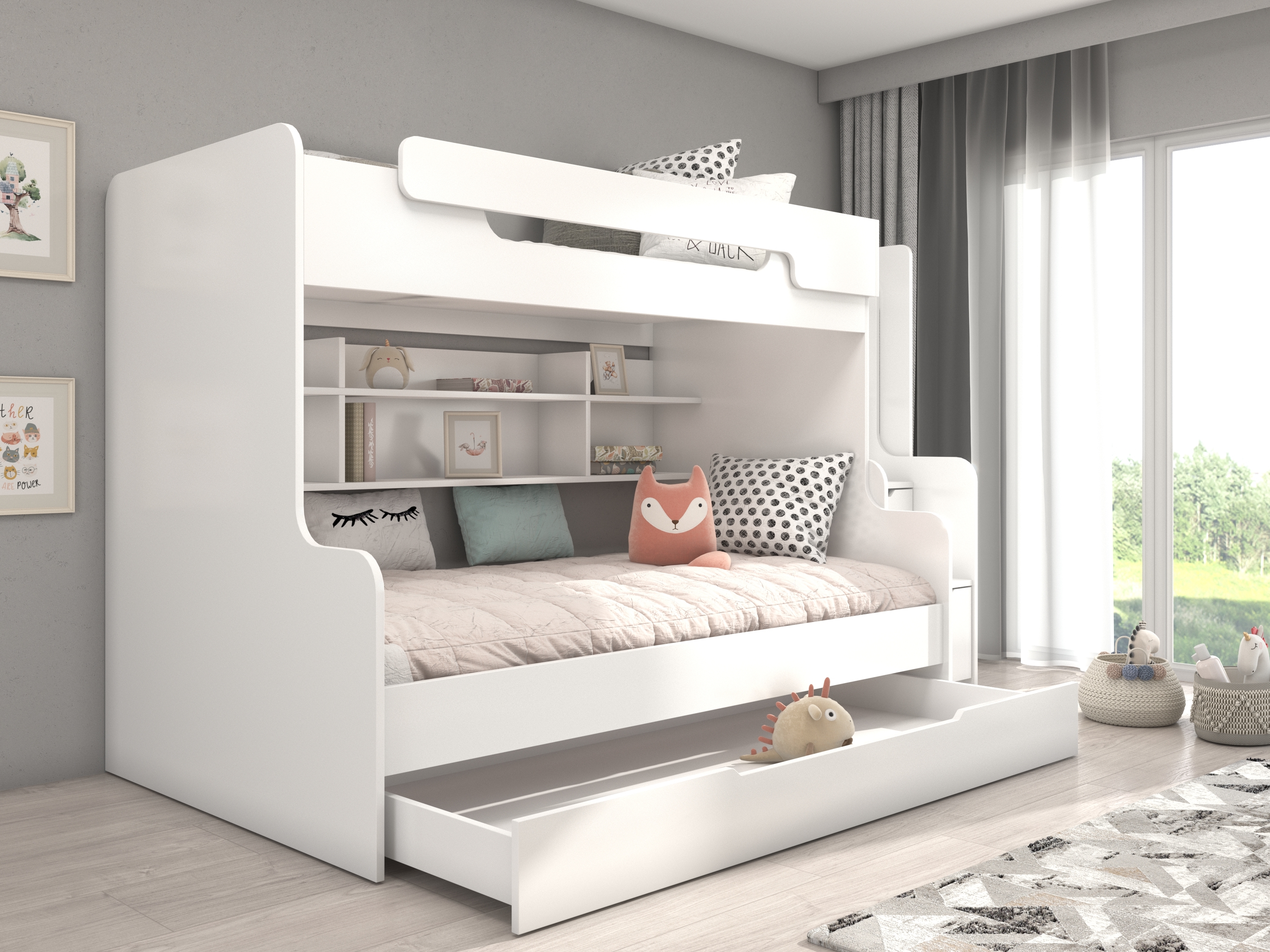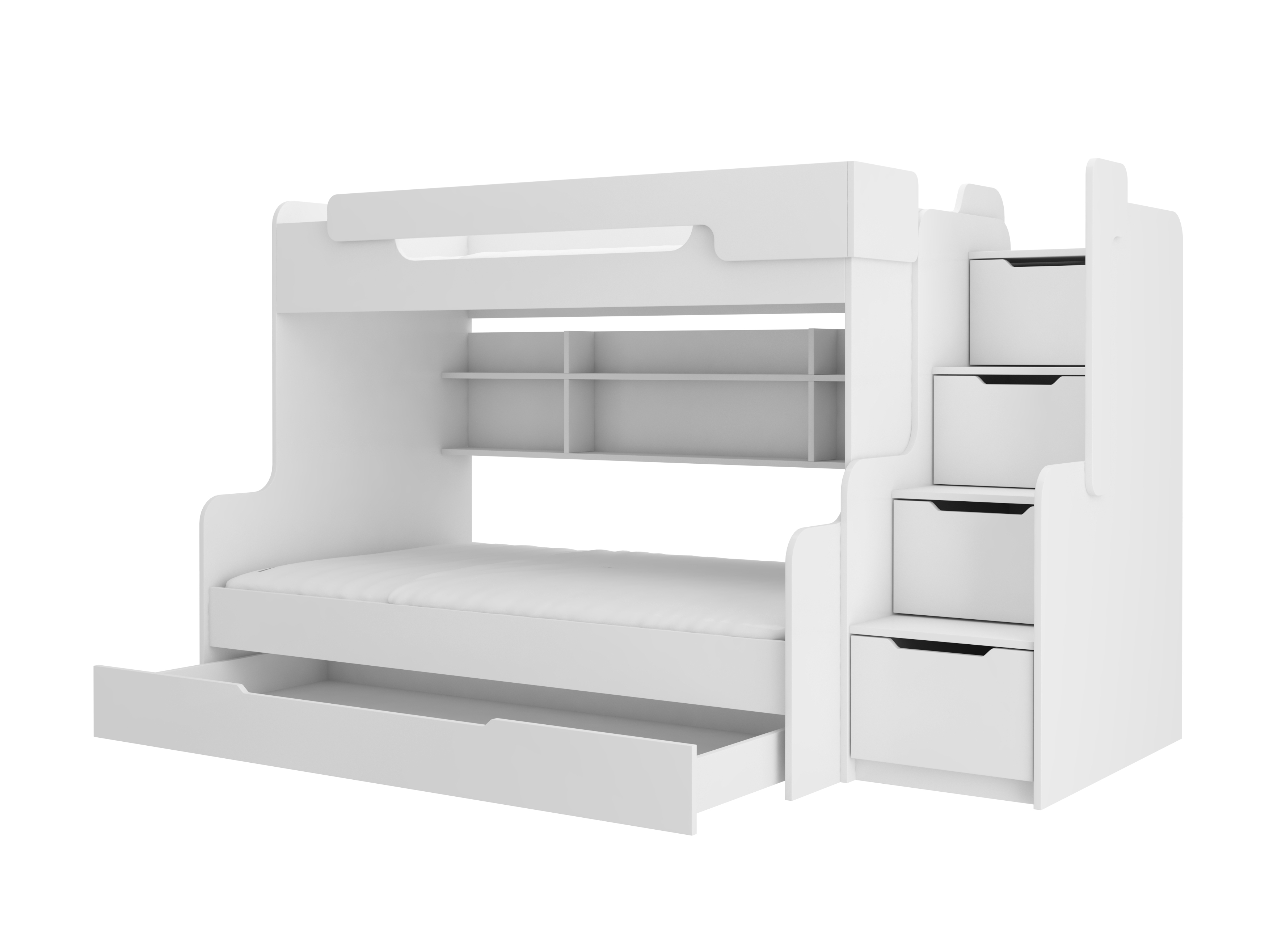 Pat etajat pentru copii 200x90 cm, 200x120 cm Homer (cu somieră și saltea) (Alb)