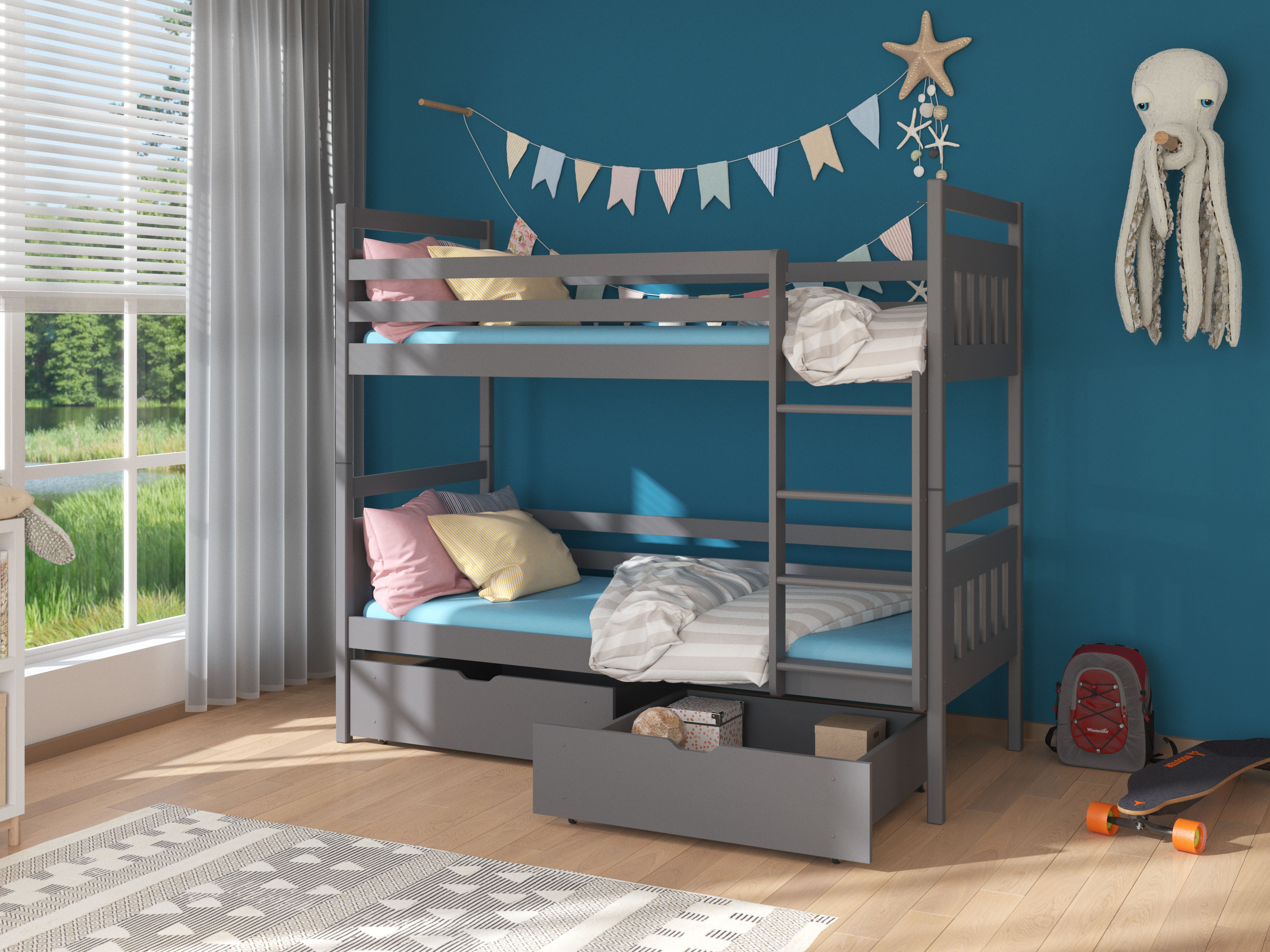 Pat etajat pentru copii 200x90 cm Adriana (cu somieră) (grafit)