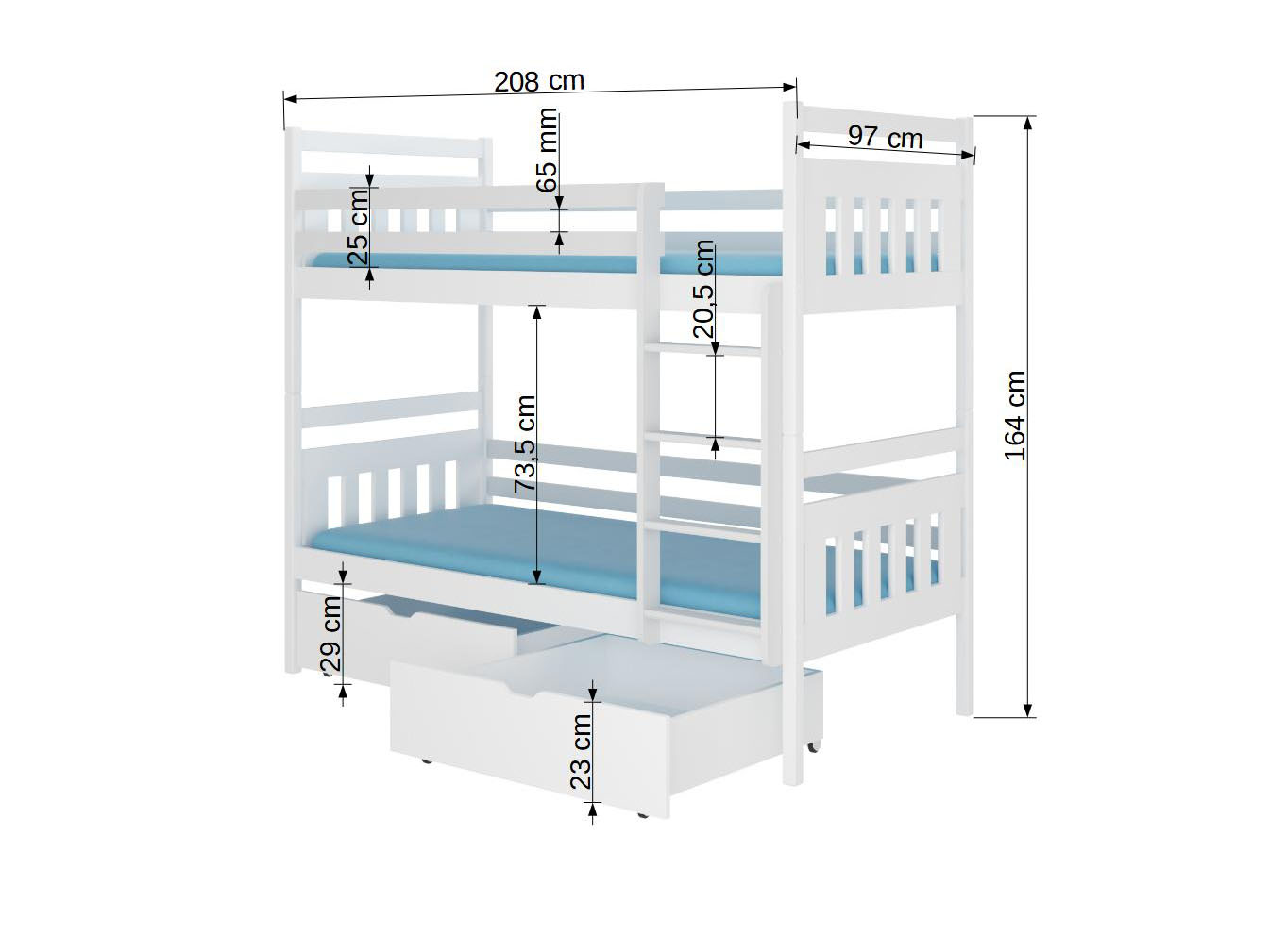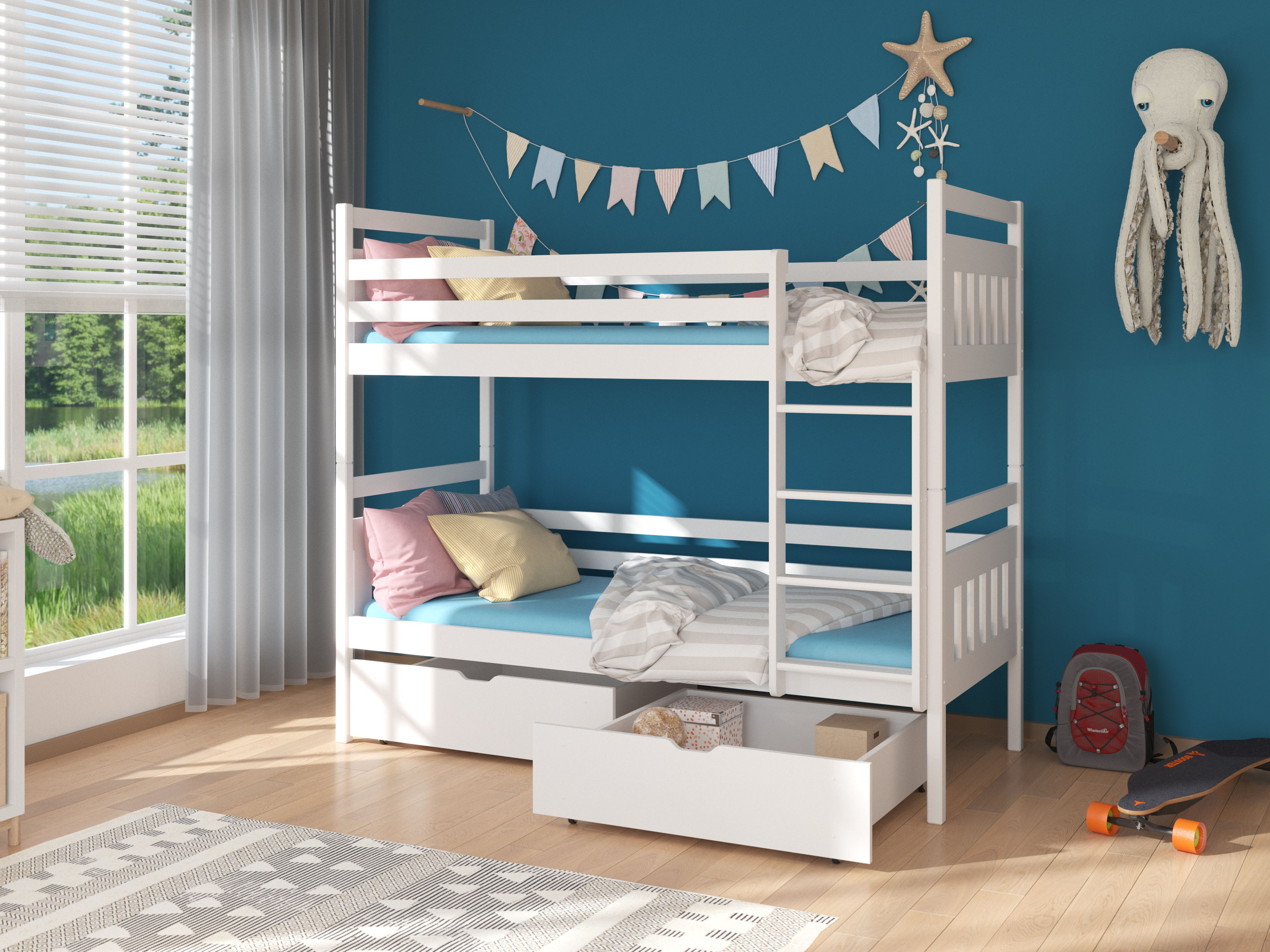 Pat etajat pentru copii 200x90 cm Adriana (cu somieră și saltea) (Alb)