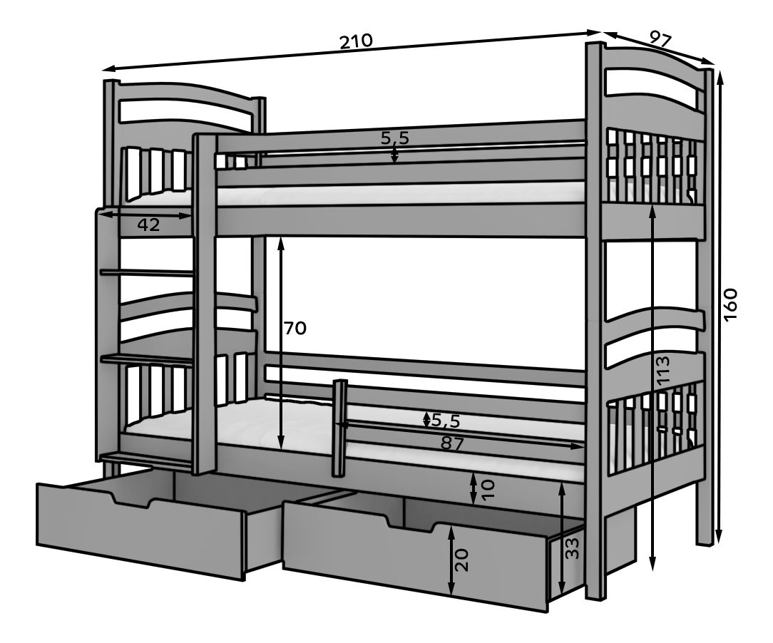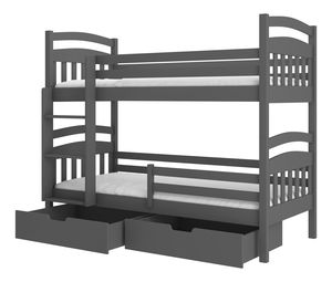 Pat etajat pentru copii 200x90 cm Adriana (cu somieră și saltea) (grafit)