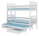 Pat etajat pentru copii 200x90 cm Aladar (cu somieră și saltea) (Alb)