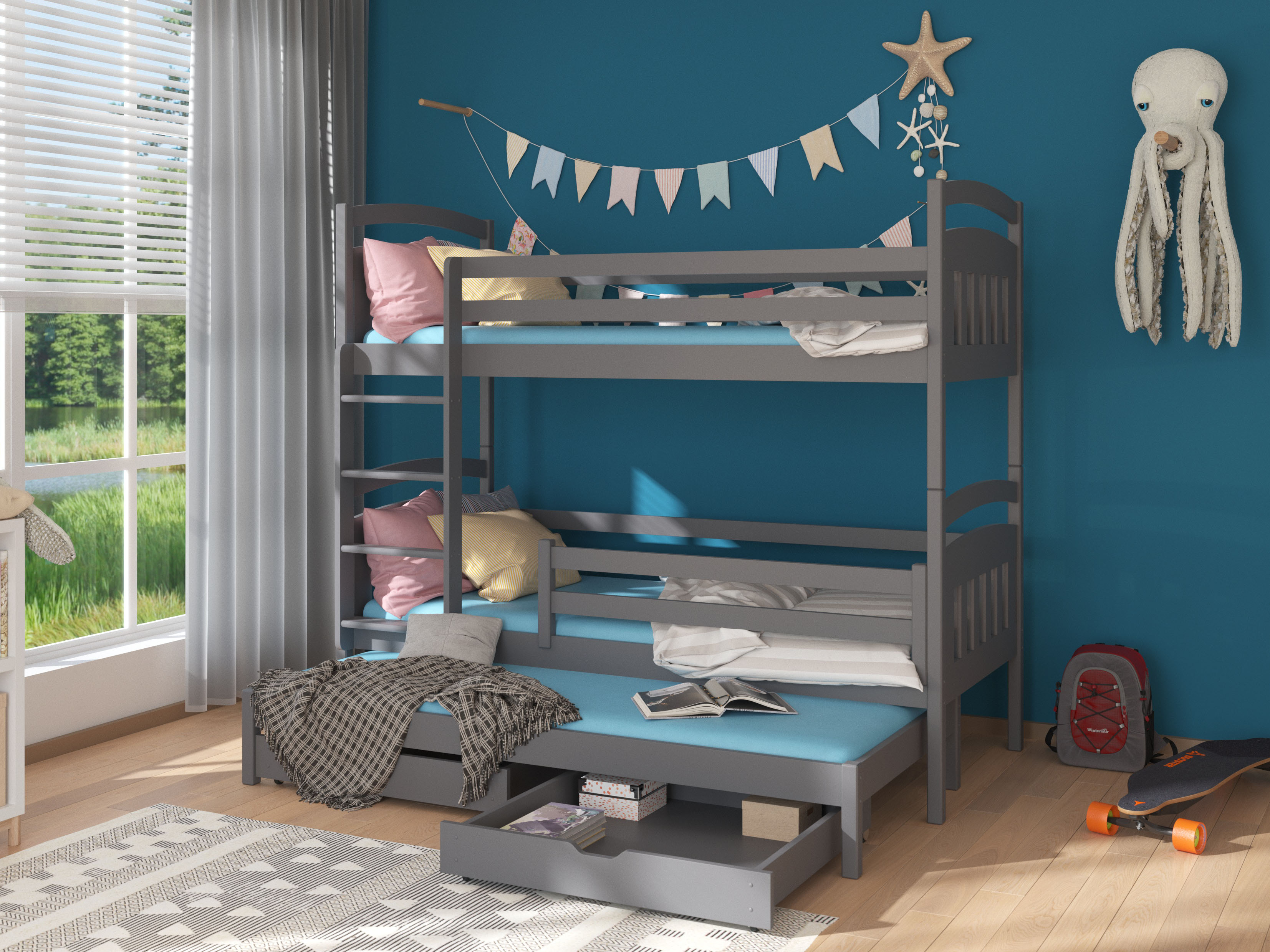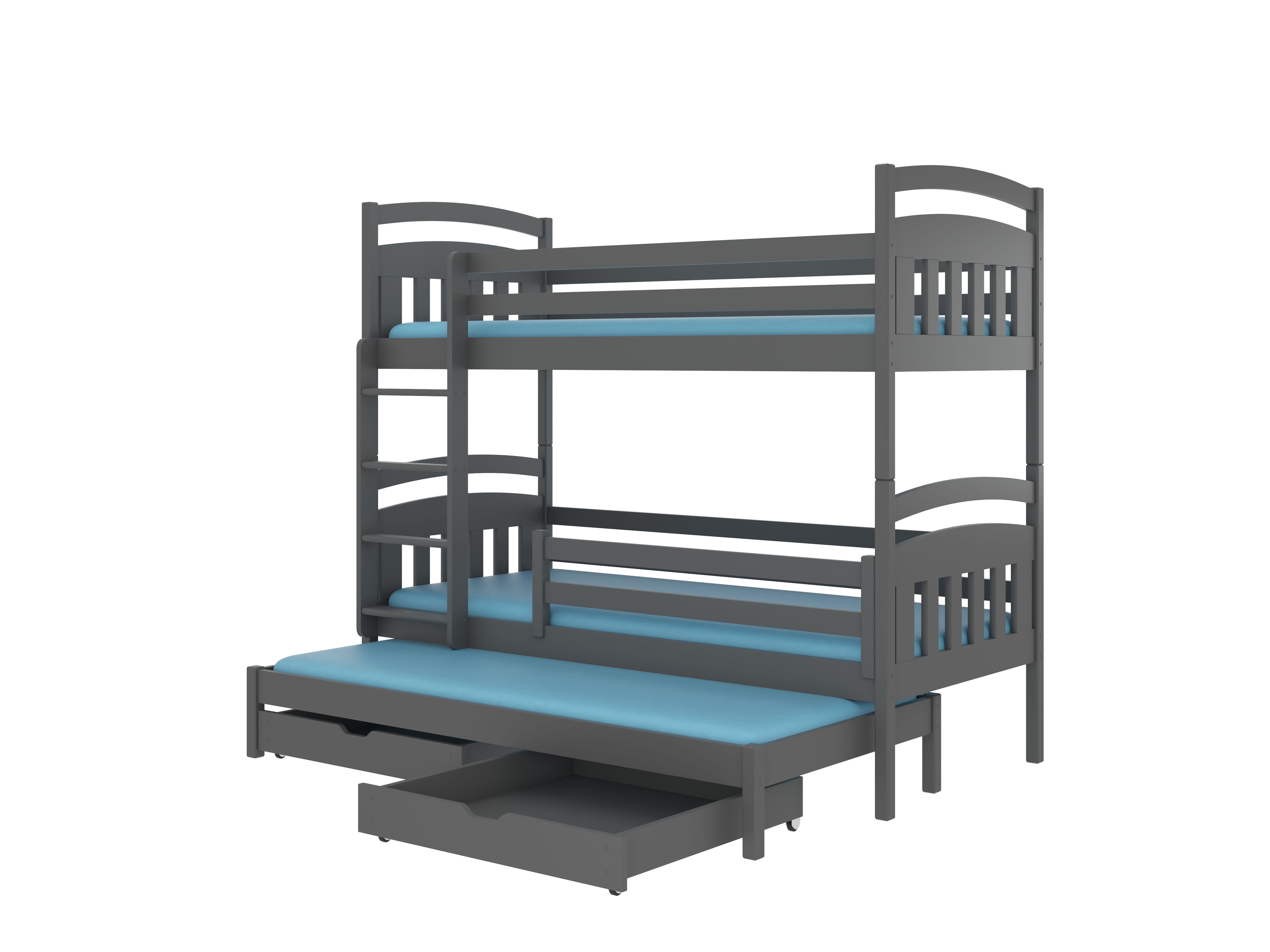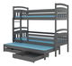 Pat etajat pentru copii 200x90 cm Aladar (cu somieră și saltea) (grafit)