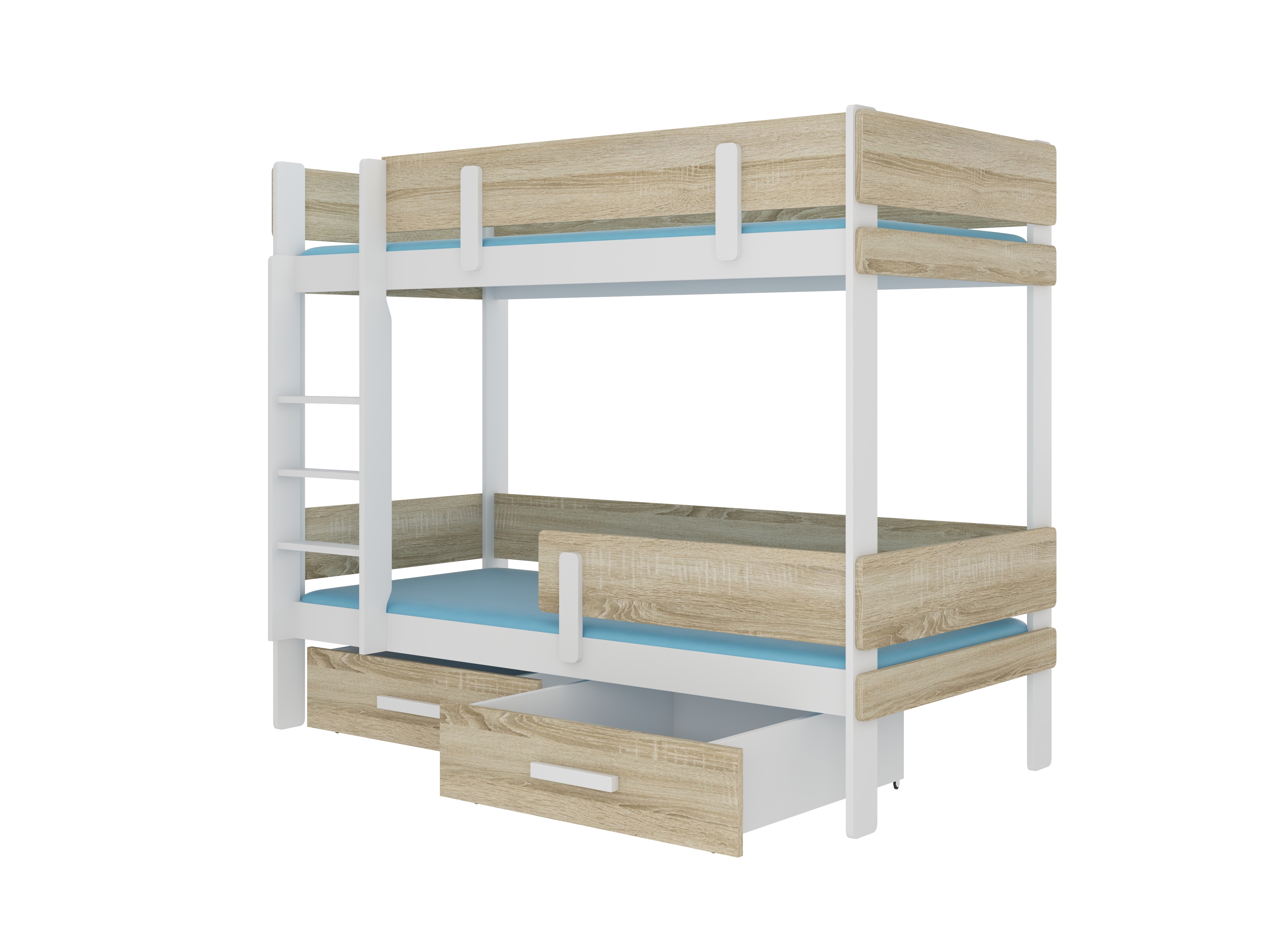 Pat etajat pentru copii 200x90 cm Ellen (cu somieră și saltea) (Alb + Stejar sonoma)