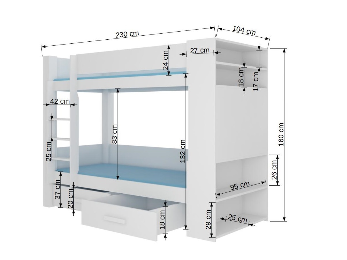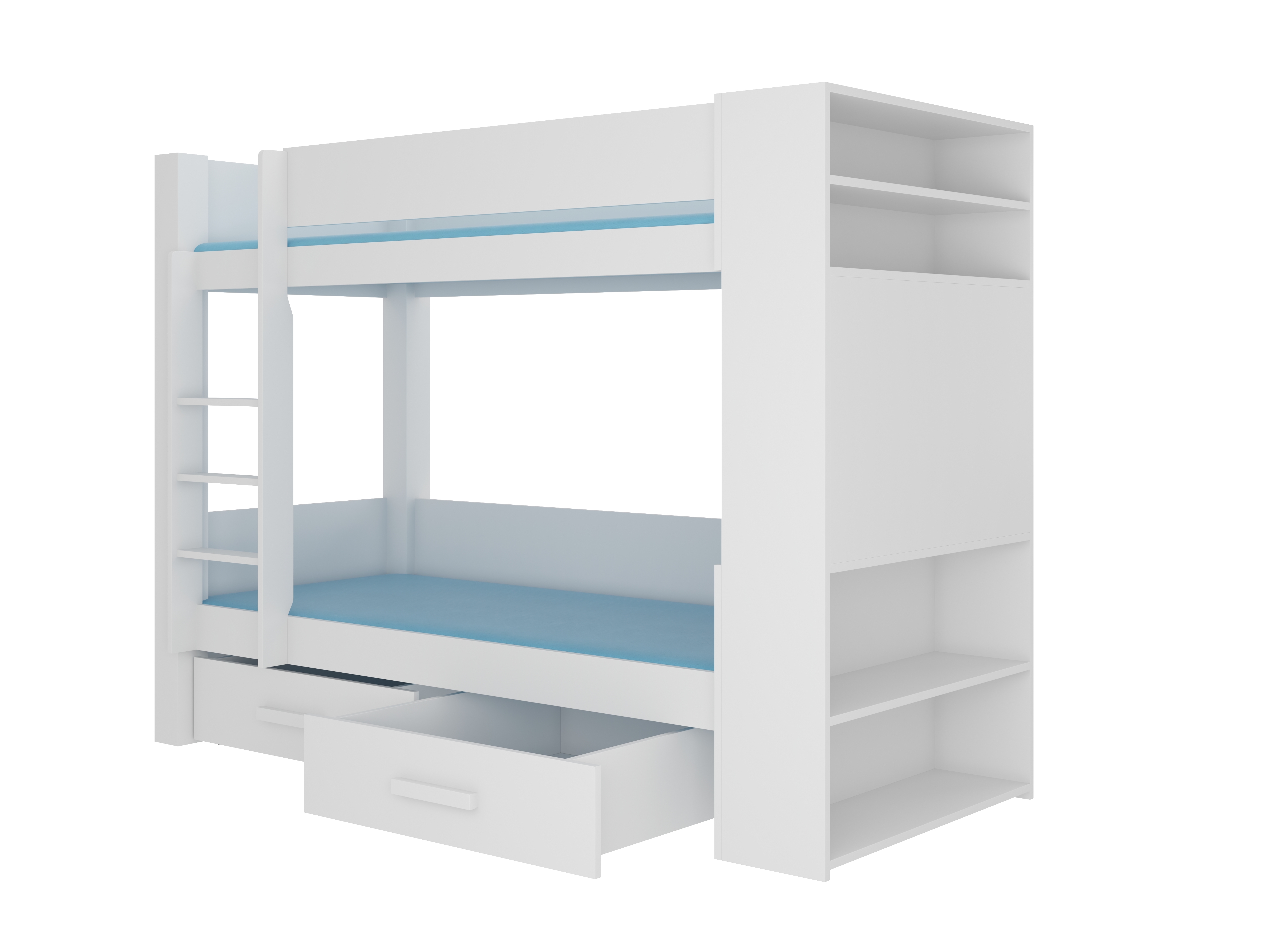 Pat etajat pentru copii 200x90 cm Gabriela (cu somieră) (Alb)