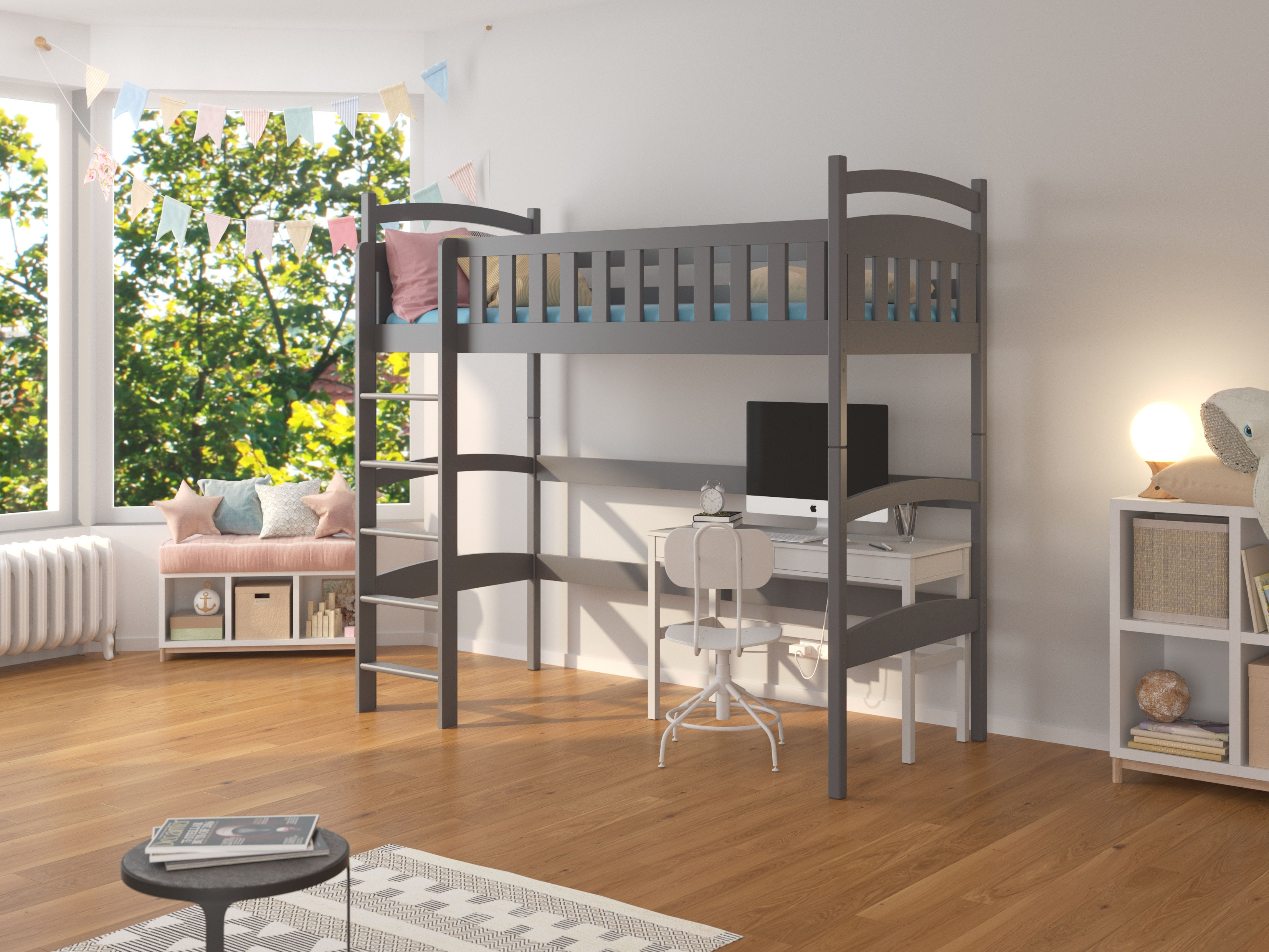 Pat etajat pentru copii 200x90 cm Milo (cu somieră) (grafit)
