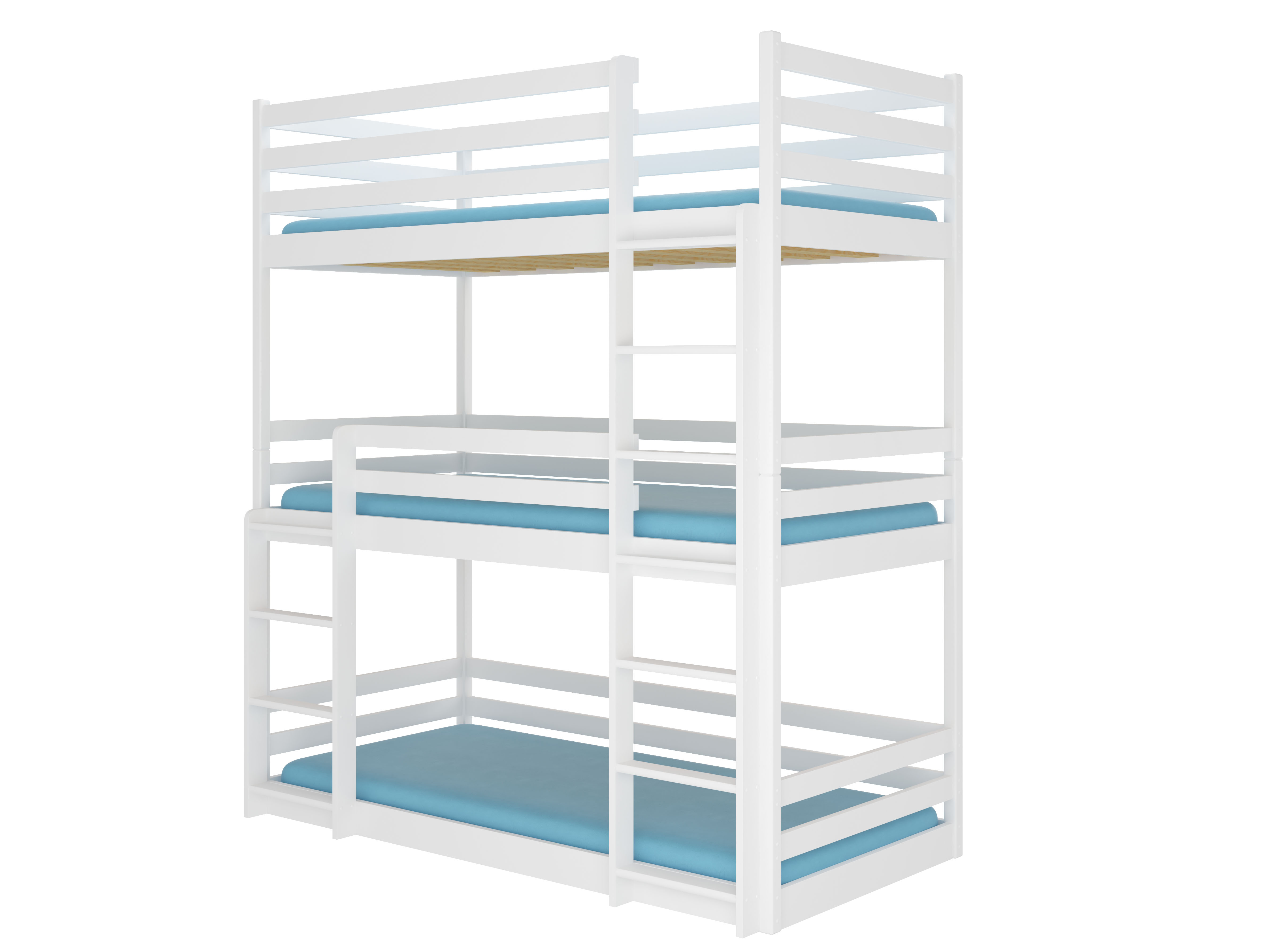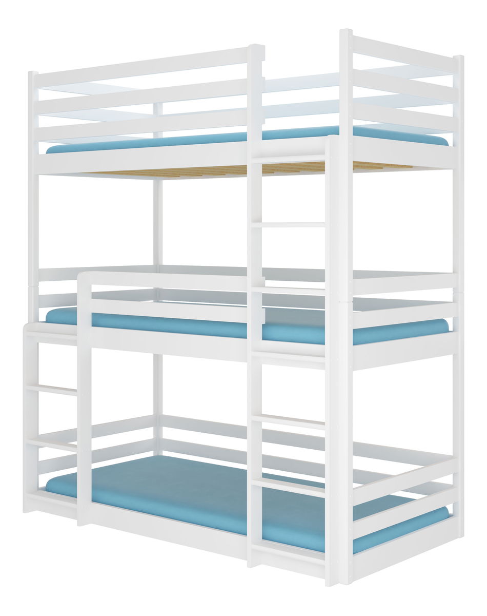 Pat etajat pentru copii 200x90 cm Teodor (cu somieră și saltea) (Alb)