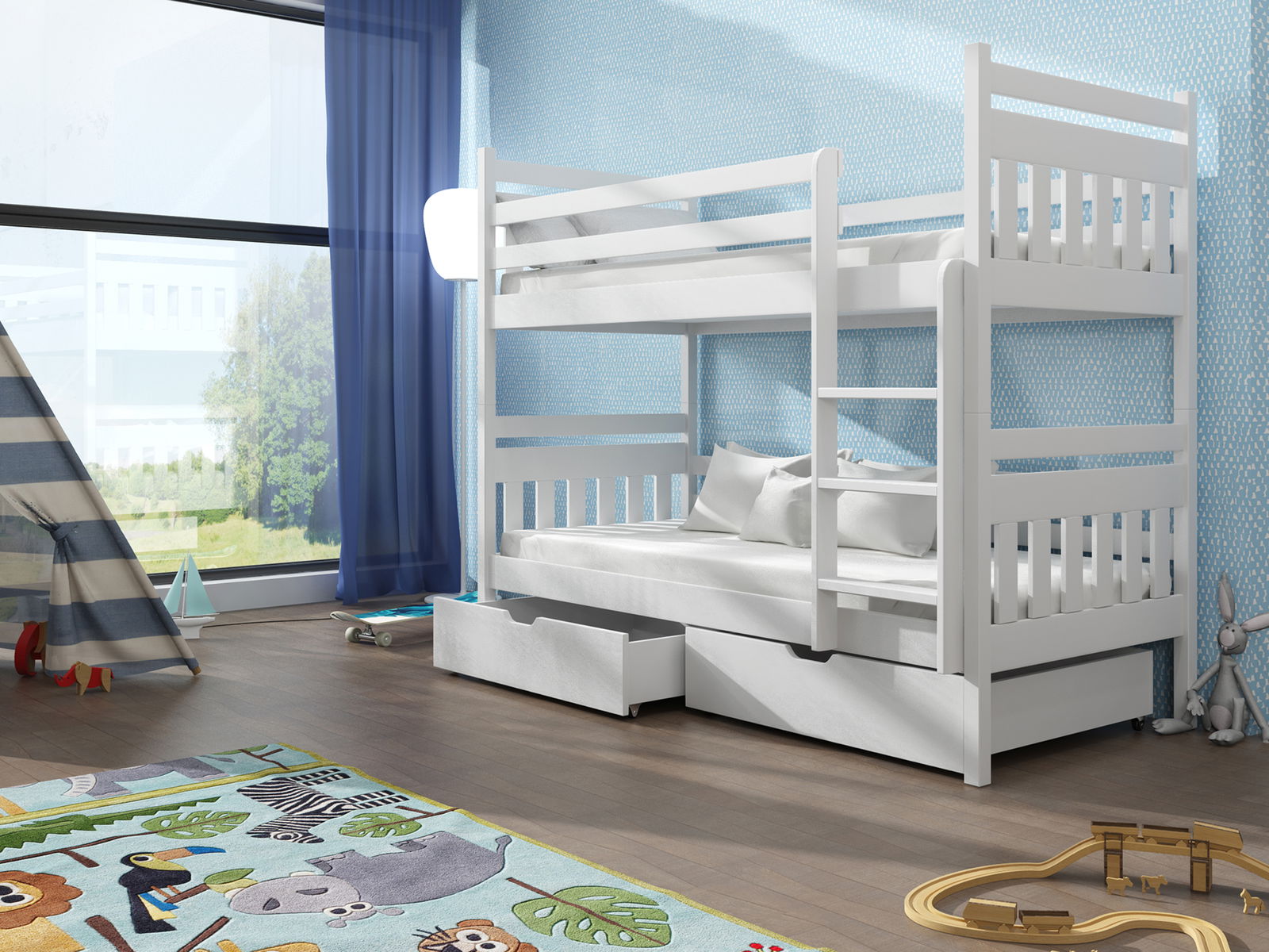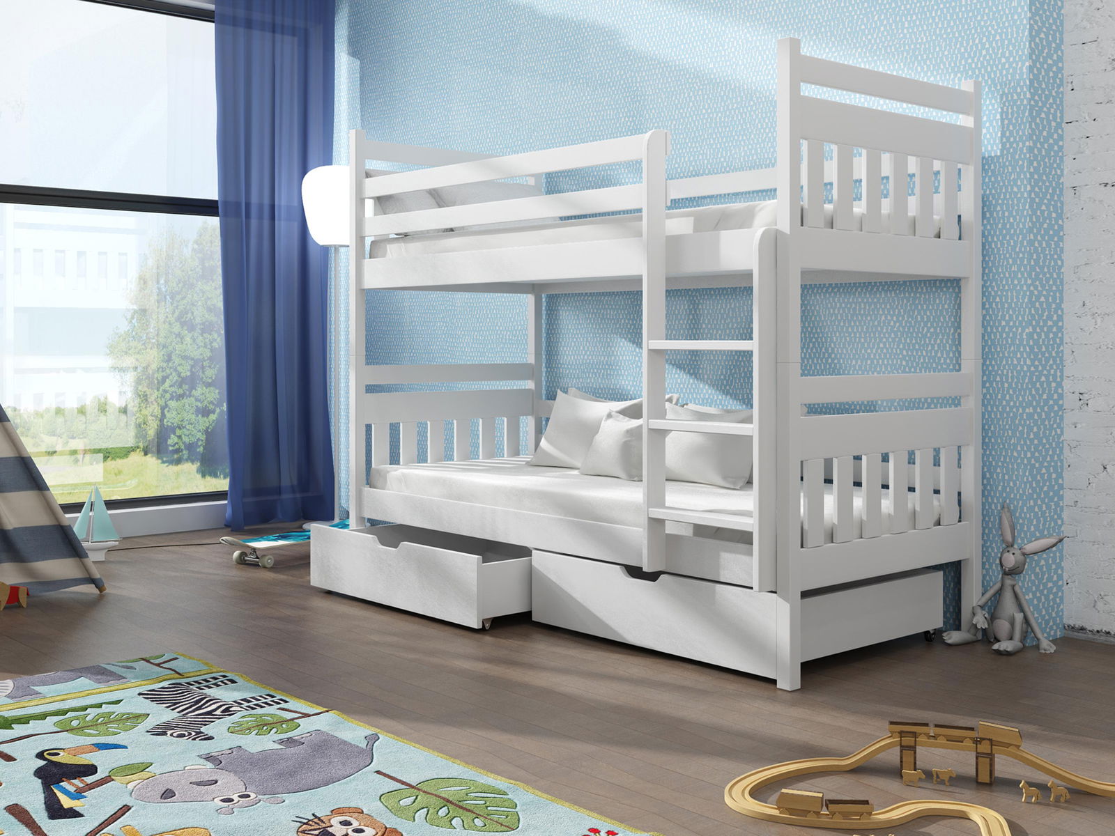 Pat etajat pentru copii 90 cm Aras (Alb) (cu somiere)