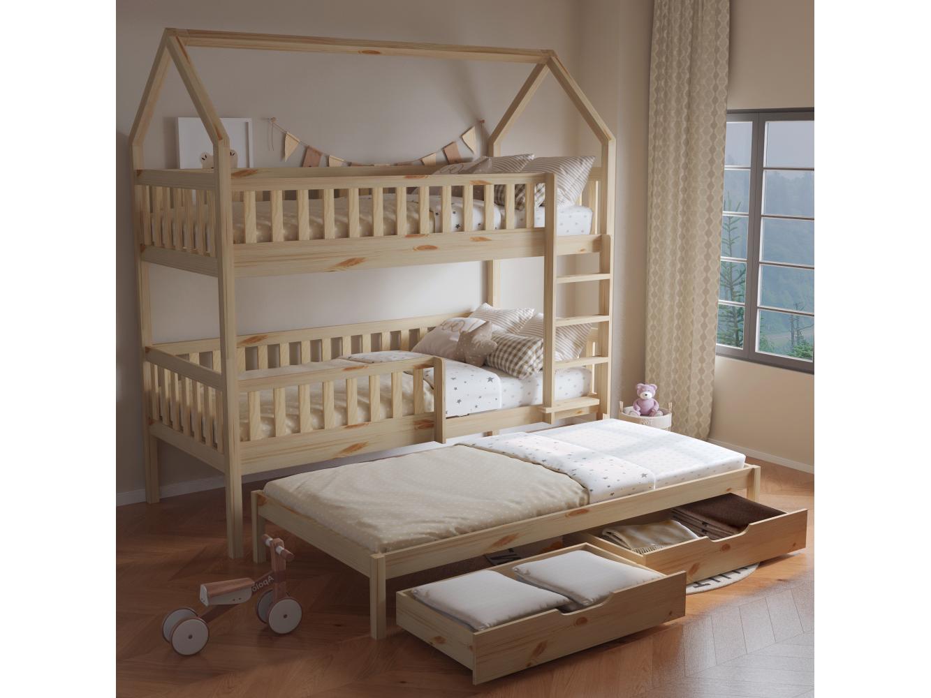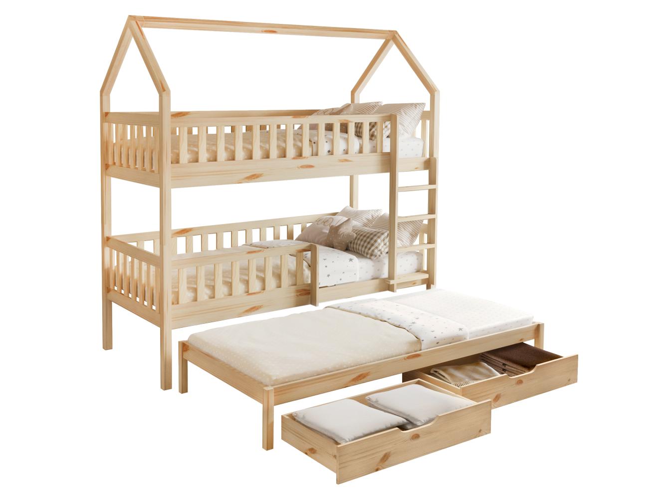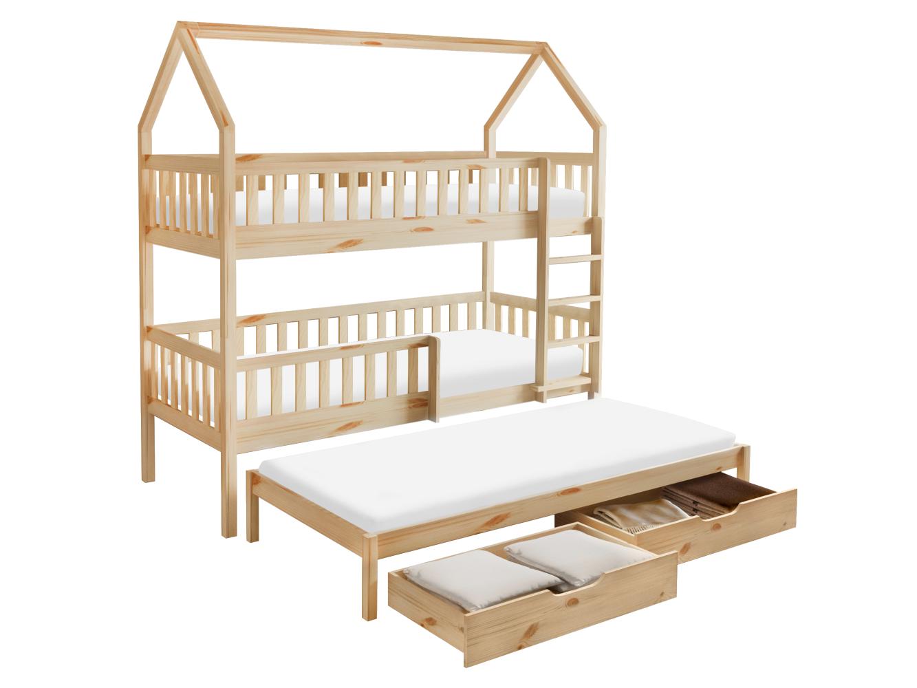 Pat etajat pentru copii , cu pat suplimentar 90 cm Virtuoso (natural) (cu somieră) (cu sp. depozitare)
