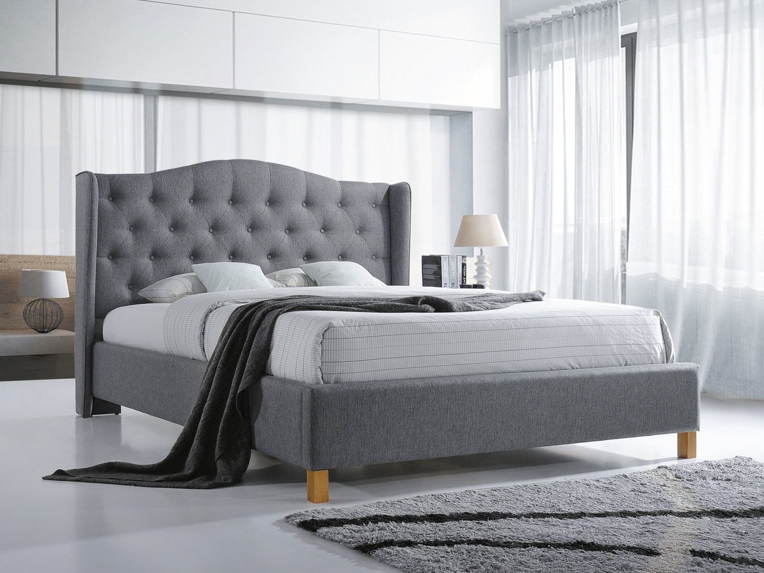 - Pat matrimonial 140 cm Arlie (cu somieră) (gri) *vânzare stoc