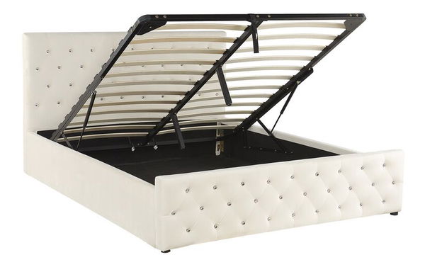 Pat matrimonial 140 cm AMESIA (bej) (cu somieră și sp. depozitare)