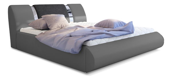 Pat matrimonial 140 cm Fabio (gri + gri închis) (cu somieră și sp. depozitare)