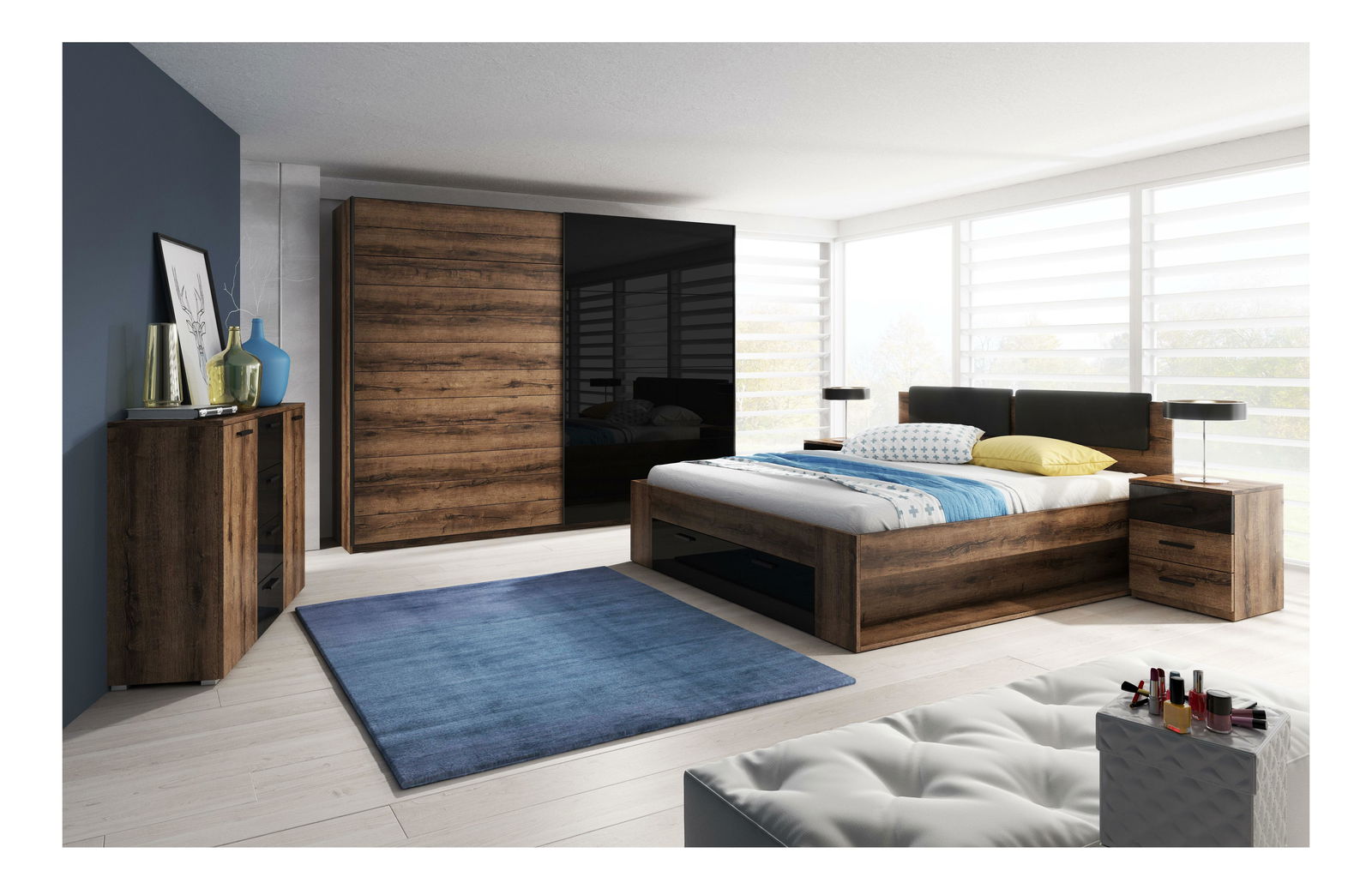 Pat matrimonial 140 cm Glynda Typ 50 (și sp. depozitare) (stejar monastery + negru lucios)