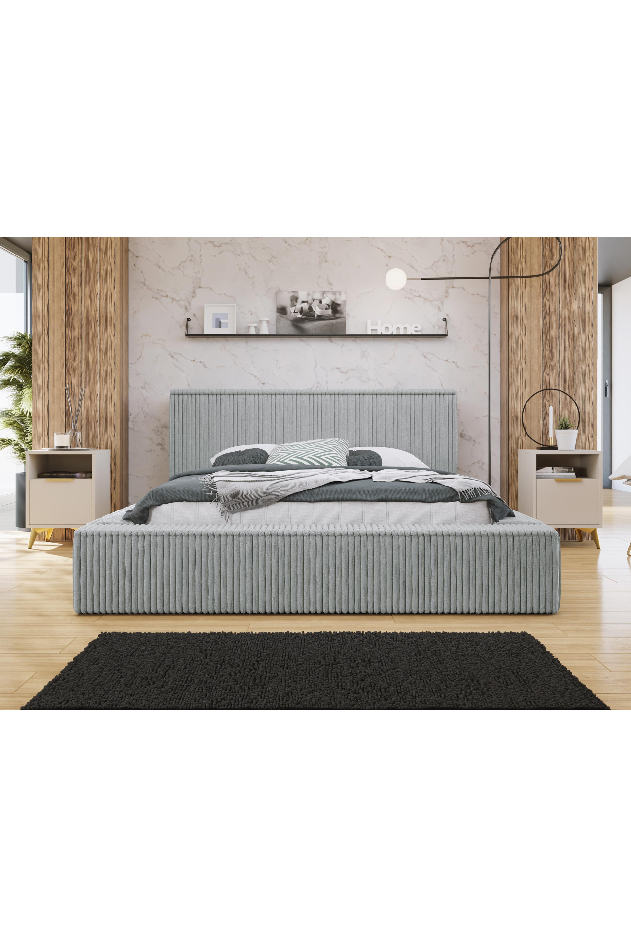 Pat matrimonial 140 cm Gretty S (Gri) (cu somieră) (cu sp. depozitare)