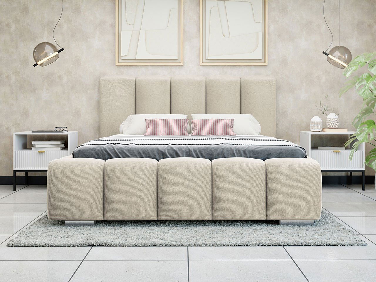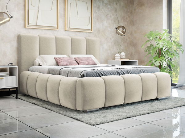 Patul matrimonial Leskana, tapițat în nuanțe calde de bej, aduce un plus de confort și rafinament în orice dormitor modern. Cu o lățime de 140 cm, oferă un spațiu generos pentru odihnă, fiind alegerea ideală pentru cei care apreciază relaxarea după o zi plină. Designul său unic, cu fețele capitonate distinct, creează impresia unei perne moi, transformând somnul într-o experiență delicată și reconfortantă.