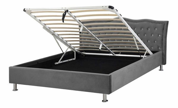 Pat matrimonial 140 cm MATH (cu somieră) (gri închis catifea)