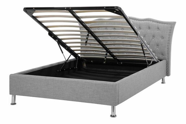 Pat matrimonial 140 cm MATH (cu spațiu de depozitare) (cu somieră) (gri)