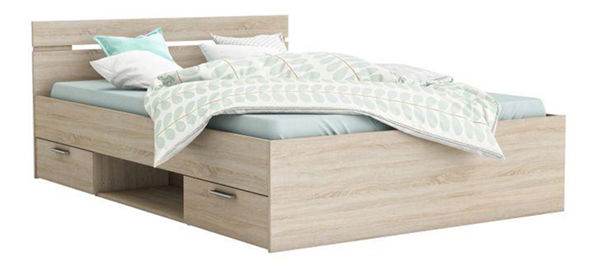 Patul Myriam este piesa practică pentru fiecare dormitor dar și camera copiilor saude studenți. Oferă spațiu de dormit de 140x200 cm, conține două sertare și sp. de depozitare deschis, sub pat.Sertarelele se pot asambla pe partea dreaptă sau stângă. Faabricat din pal laminat pe versiunea color de stejar sonoma.
