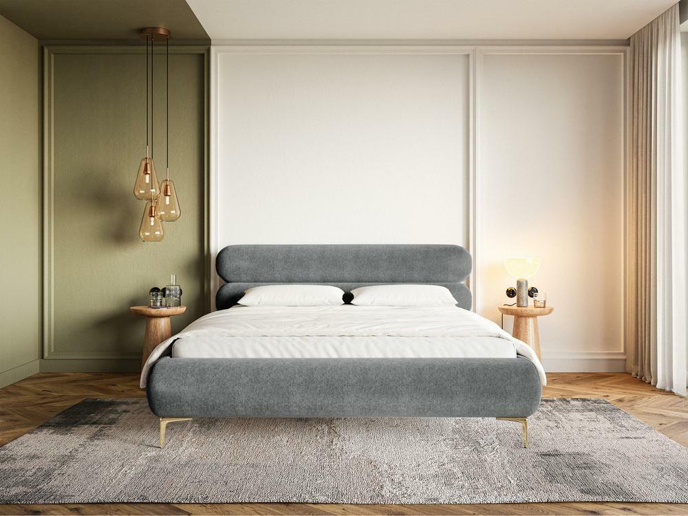 Pat matrimonial 140 cm Rirri 140B (cu somieră) (gri + auriu)