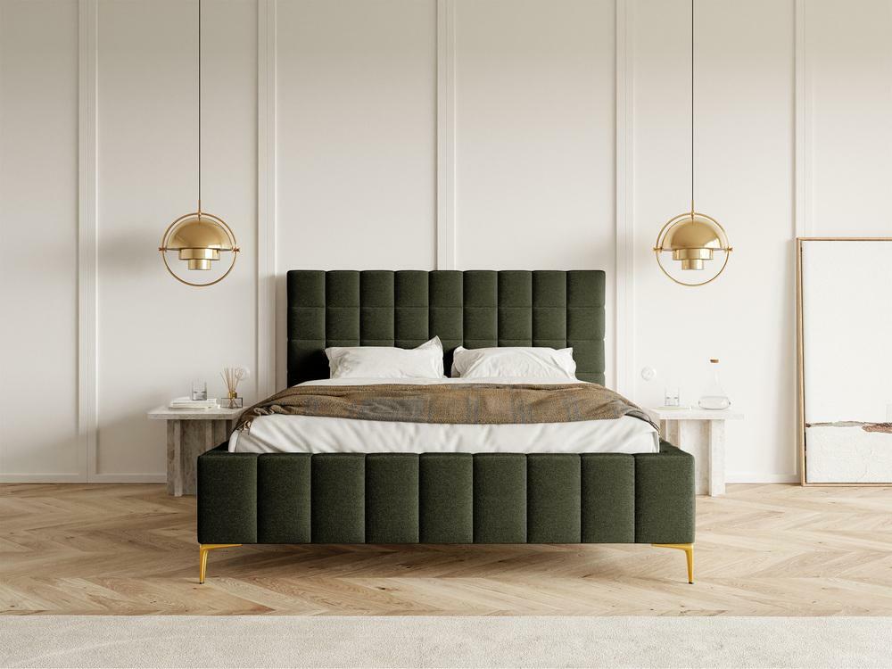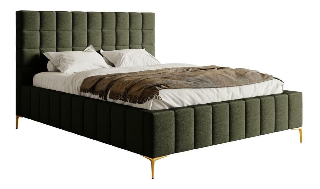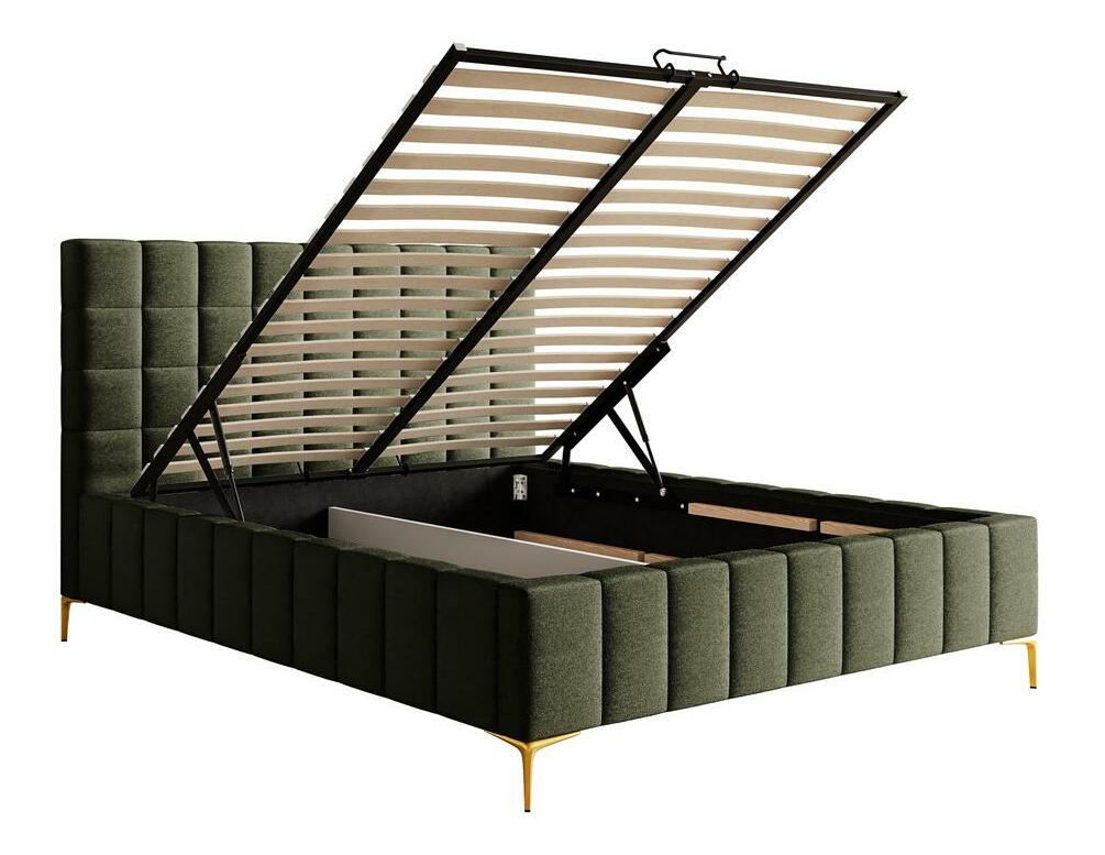 Pat matrimonial 140 cm Sheldona 140 (cu somieră) (cu sp. depozitare) (măslin + auriu)