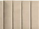 Pat elegant cu design modern și spătar înalt. Forma dreptunghiulară a patului poate părea clasică la prima vedere, însă datorită cusăturilor verticale de pe tăblie, oferă un aspect modern și elegant. Pat este tapițat în întregime cu tapițerie de catifea de culoare bej, ceea ce îi conferă un aspect sofisticat. Picioarele mici și discrete garantează stabilitatea și rezistența întregului cadru.