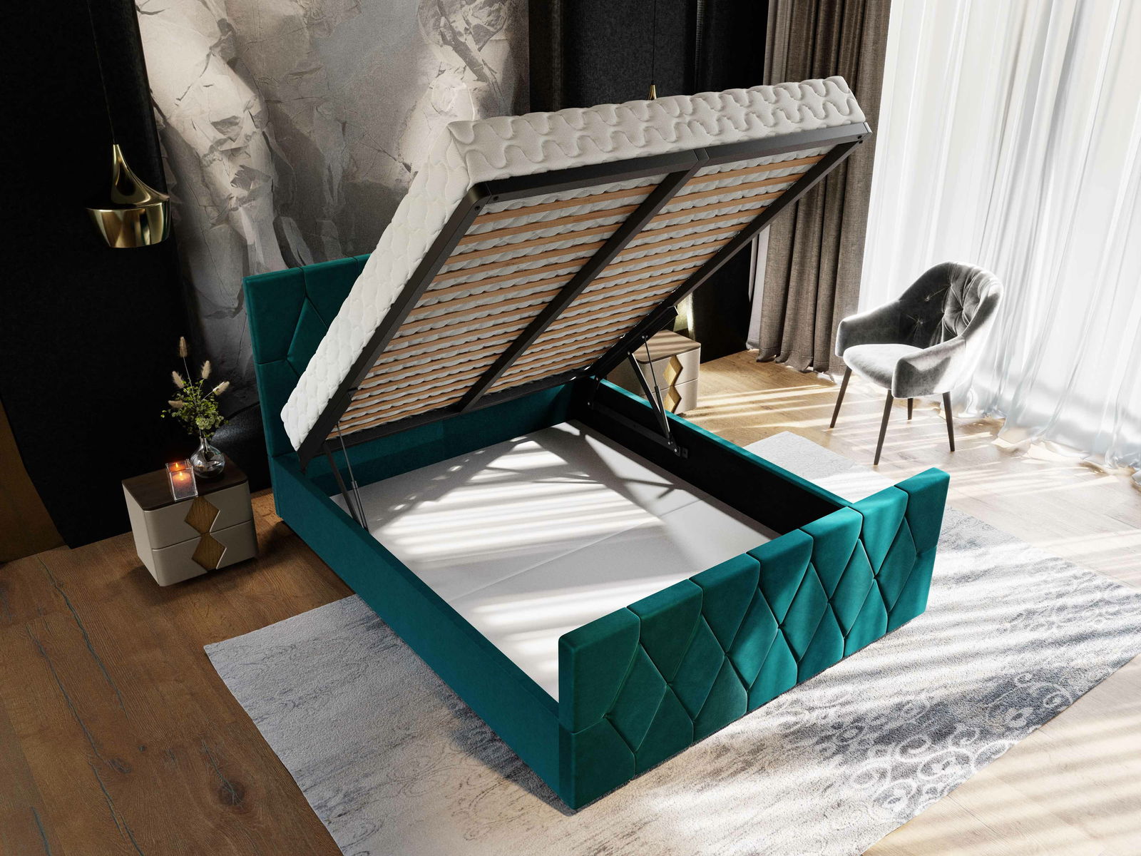 Patul matrimonial din seria Alex oferă finețe și eleganță fiecărui dormitor. În interiorul patului veți găsi o somieră și un spațiu de depozitare pentru lenjeria de pat. La alegere dintre diferite dimensiuni și versiuni color.