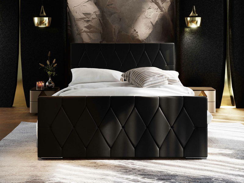 Pat matrimonial 160 cm Alex (Negru) (cu somieră și sp. depozitare)