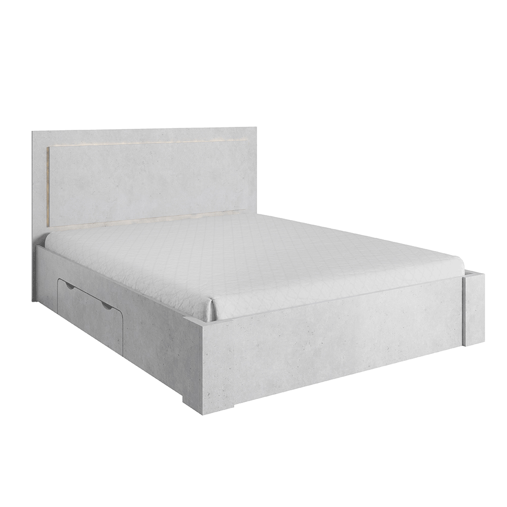 Pat matrimonial 160 cm Atalen (gri beton) (și sp. depozitare)