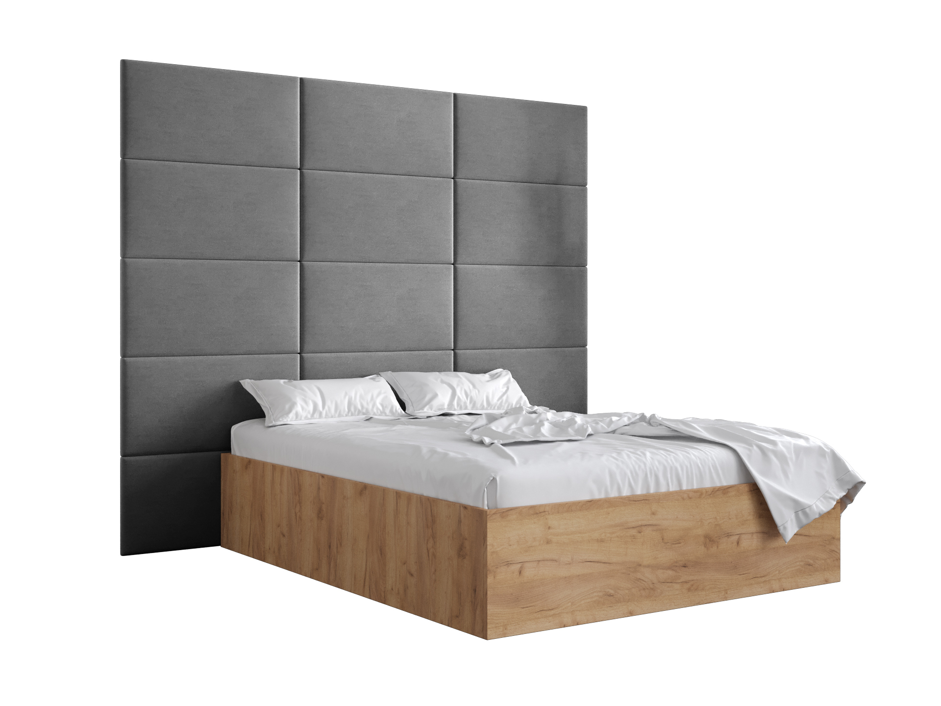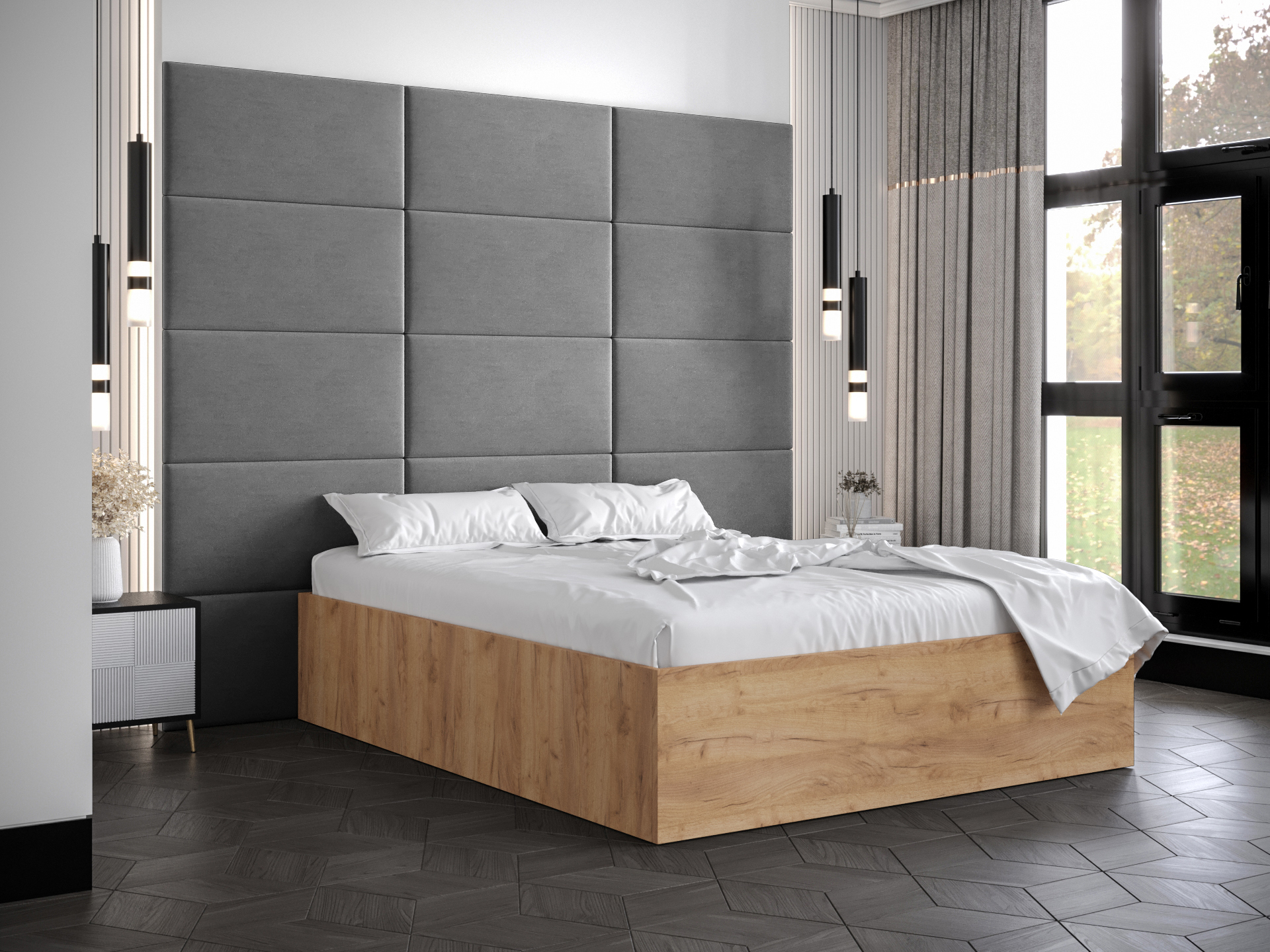 Pat matrimonial cu tăblie tapițată 160 cm Brittany 1 (Stejar craft auriu + gri) (cu somieră)