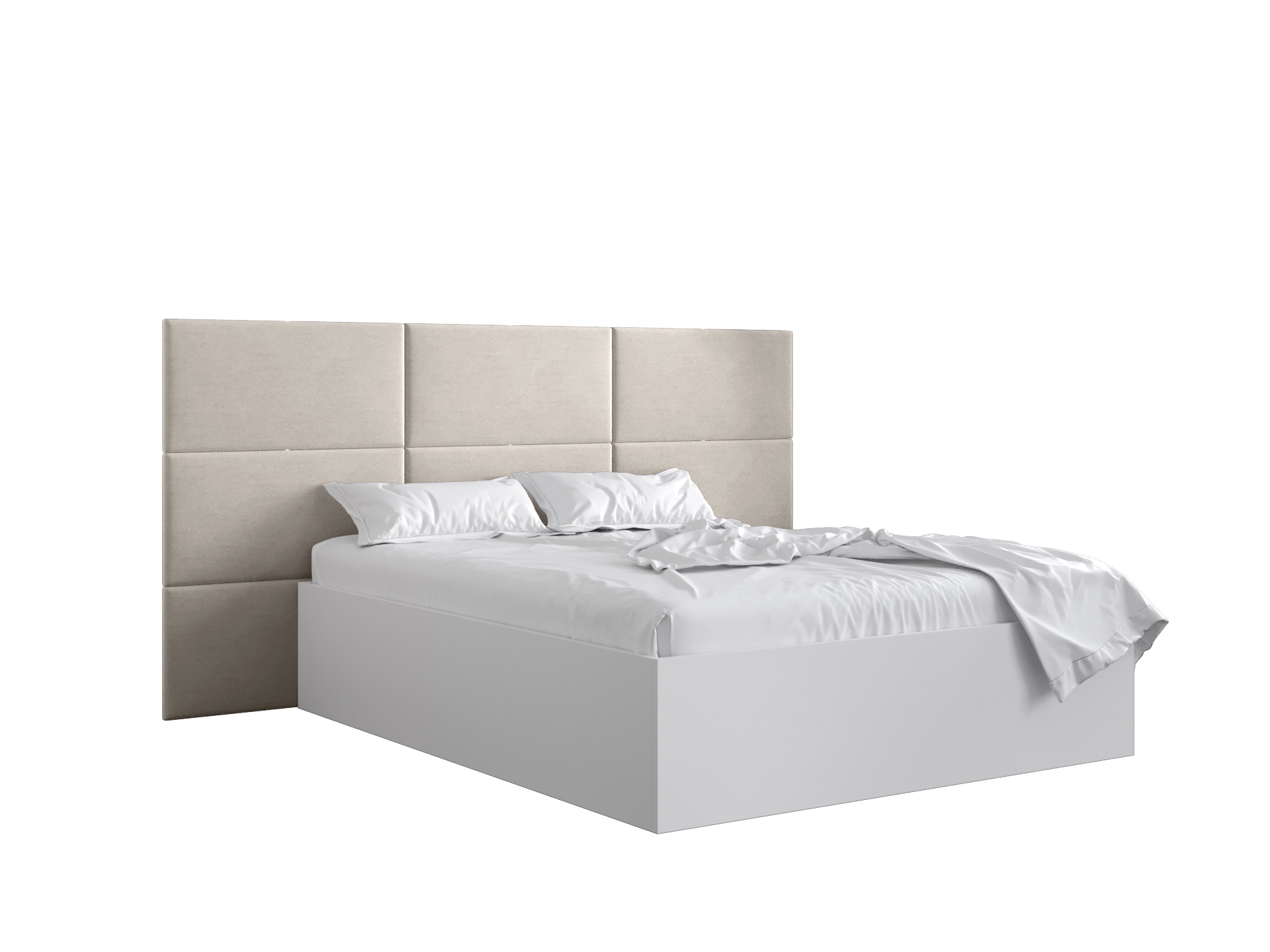 Pat matrimonial cu tăblie tapițată 160 cm Brittany 2 (Alb mat + crem) (cu somieră)