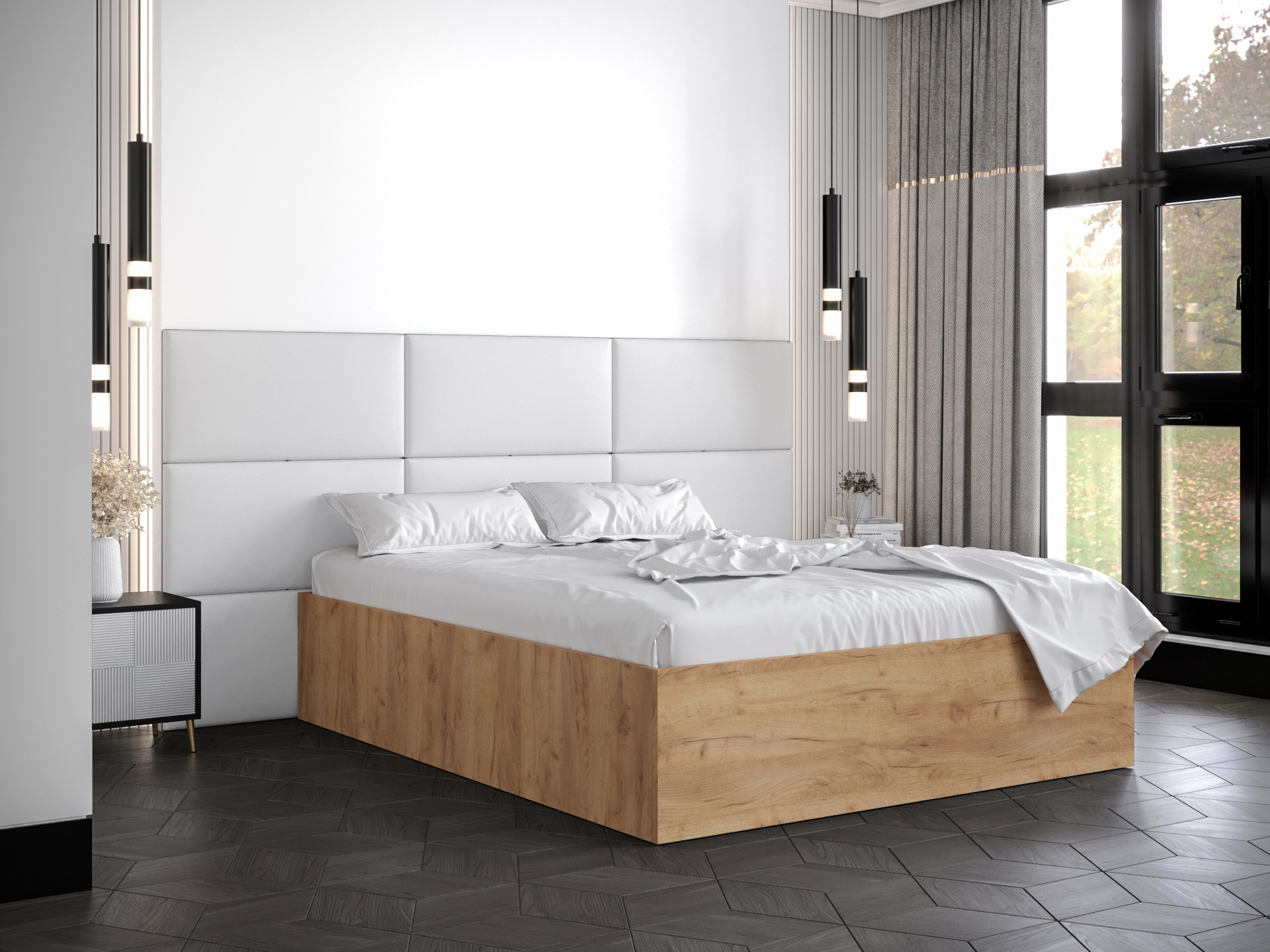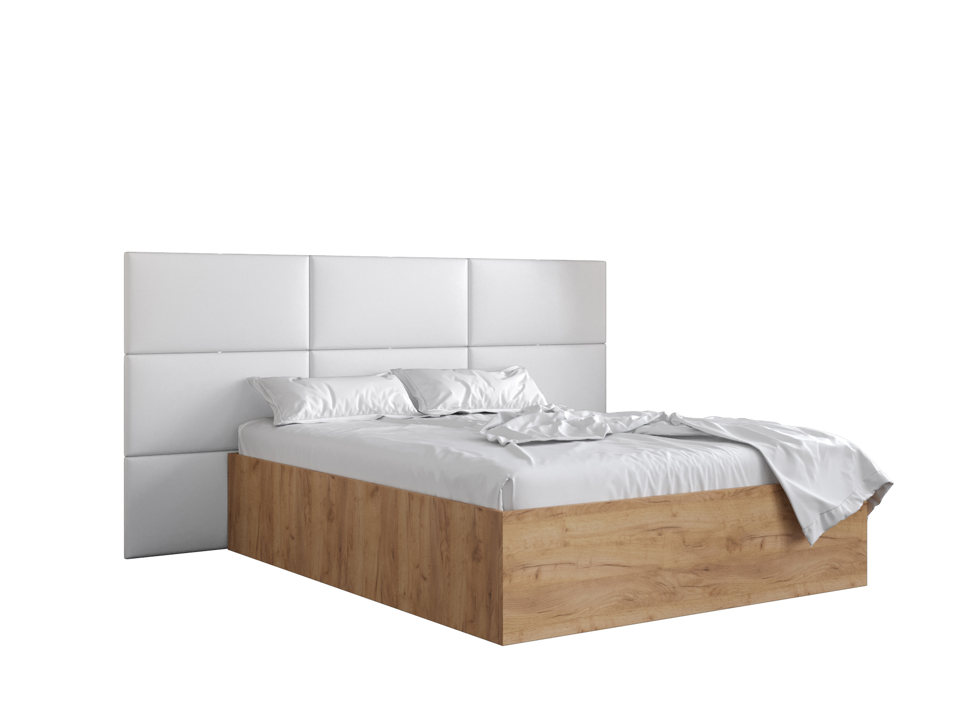 Pat matrimonial cu tăblie tapițată 160 cm Brittany 2 (Stejar craft auriu + Alb) (cu somieră)