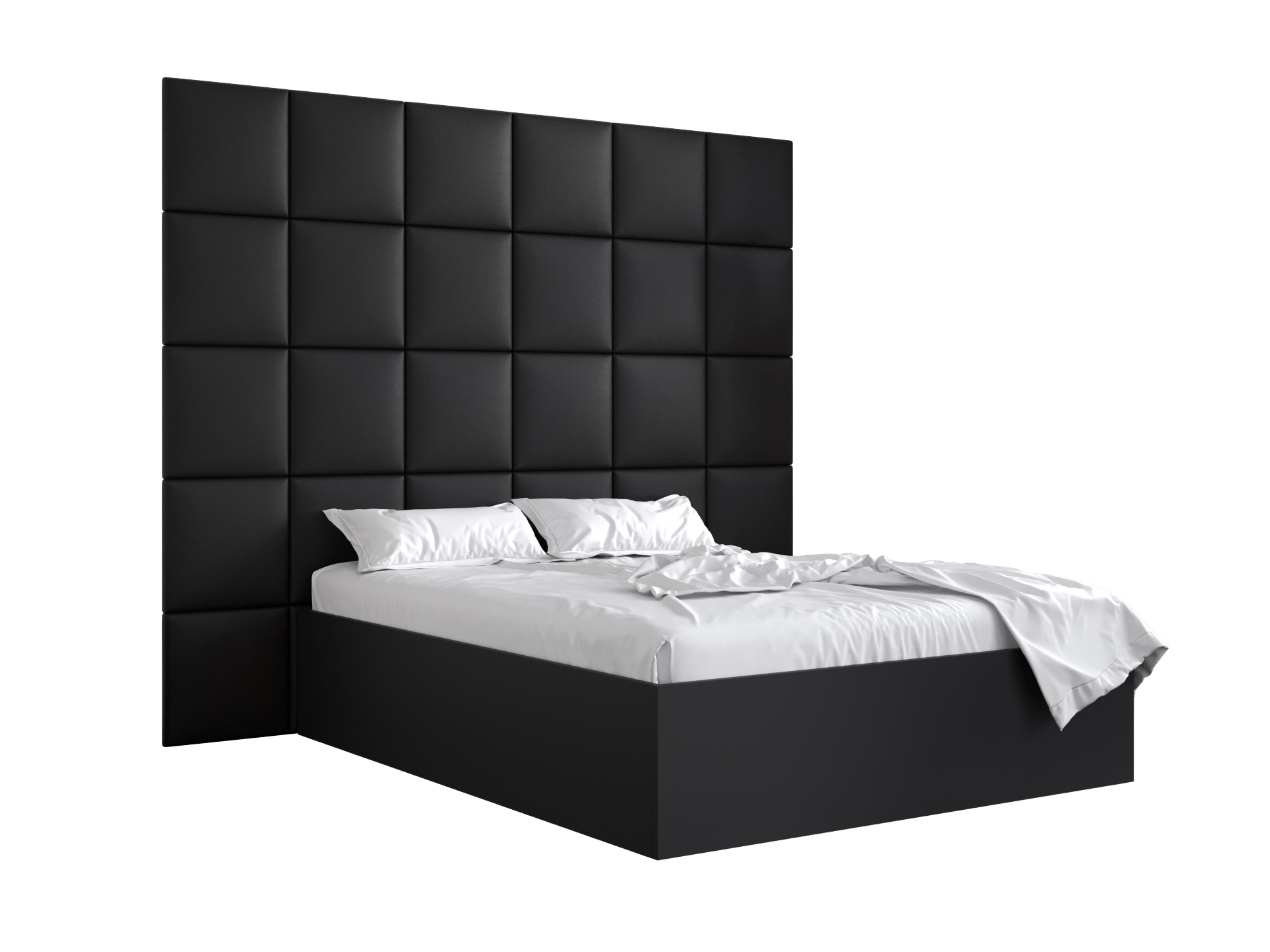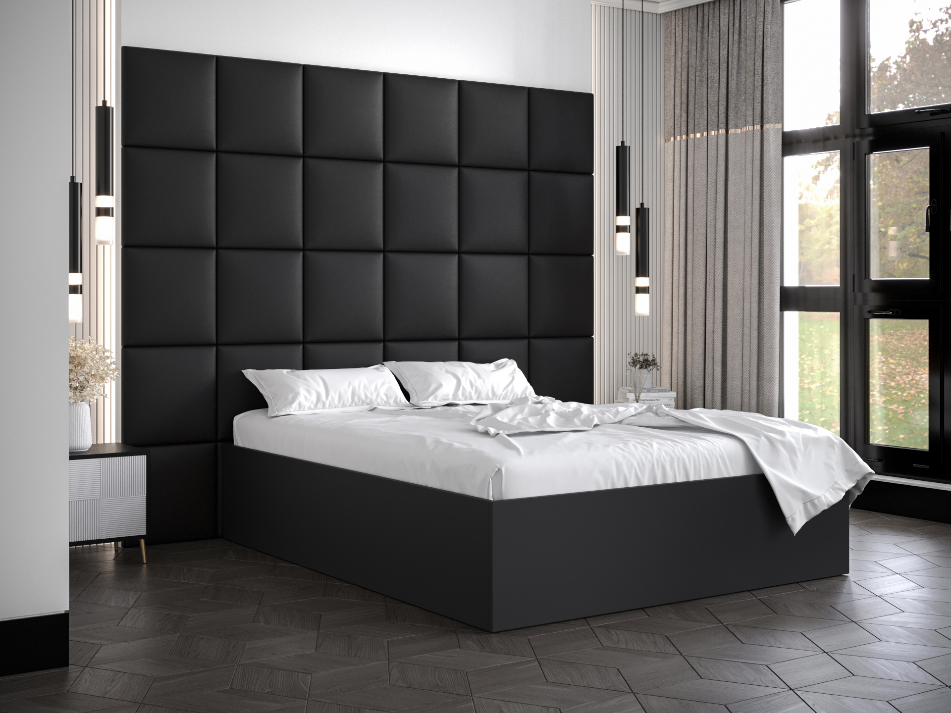 Pat matrimonial cu tăblie tapițată 160 cm Brittany 3 (Negru mat + Negru) (cu somieră)