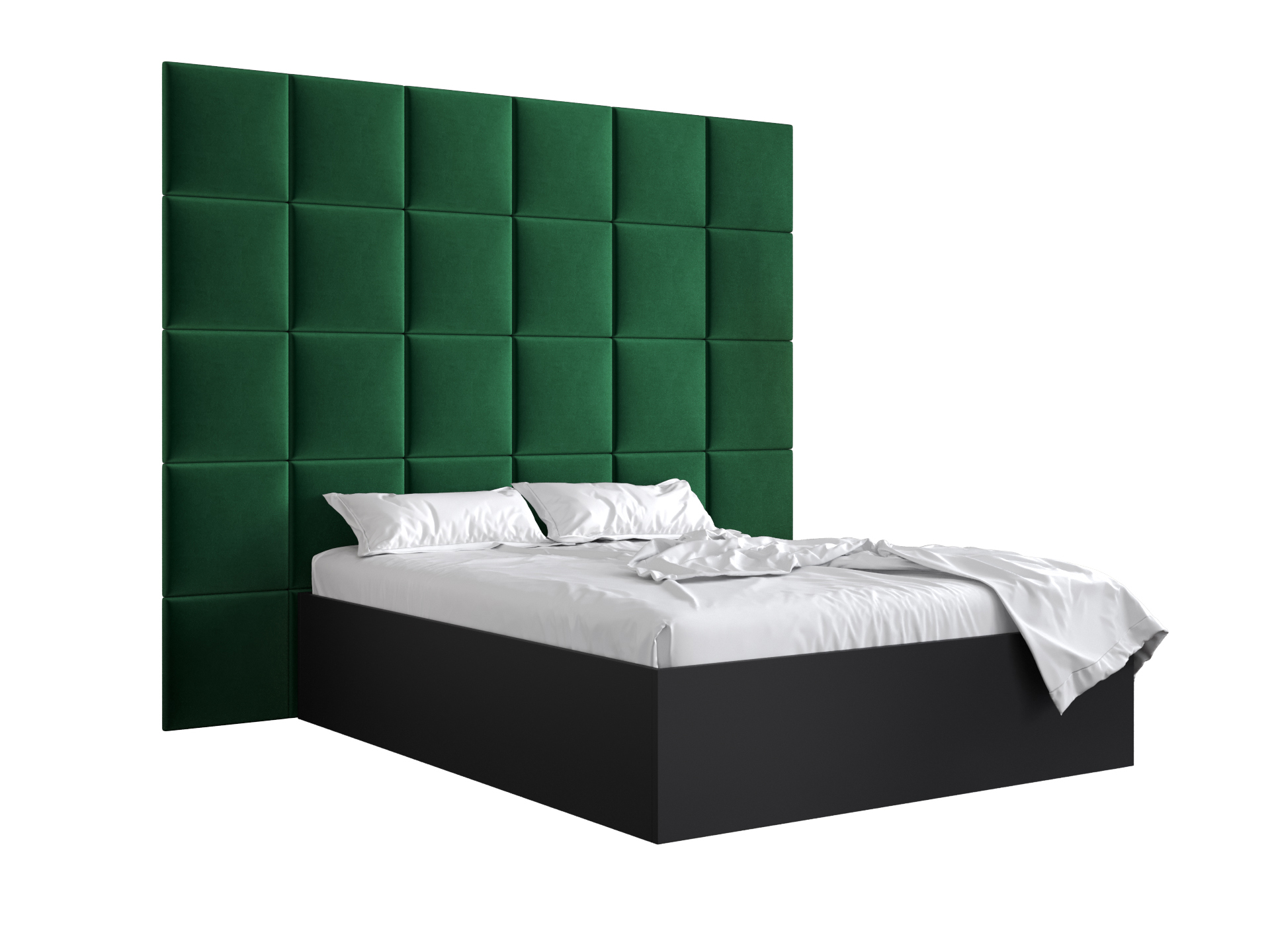 Pat matrimonial cu tăblie tapițată 160 cm Brittany 3 (Negru mat + verde) (cu somieră)