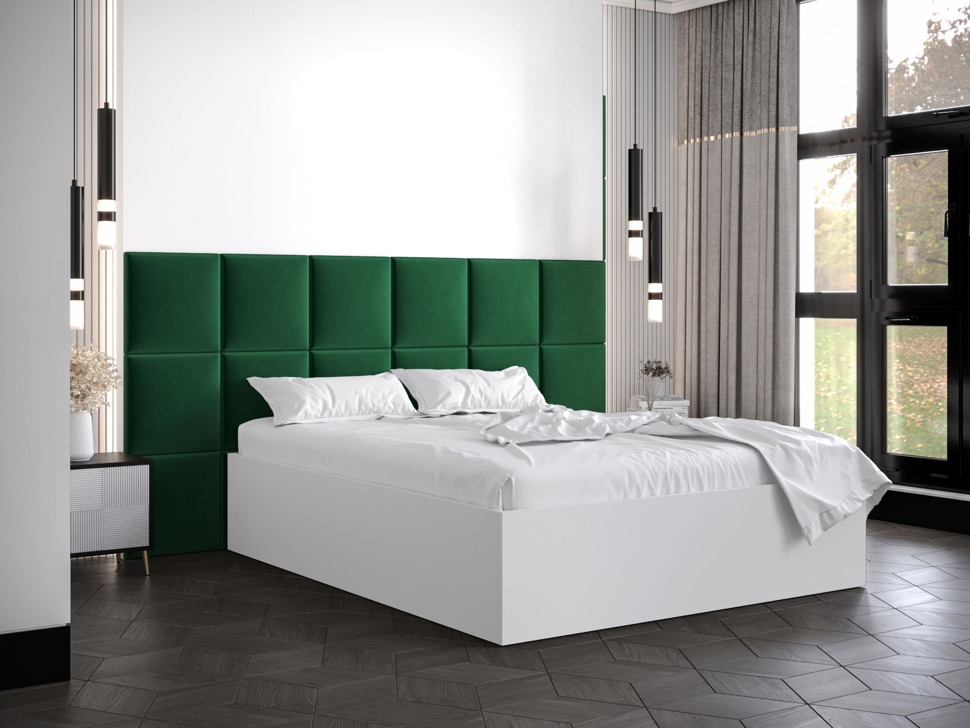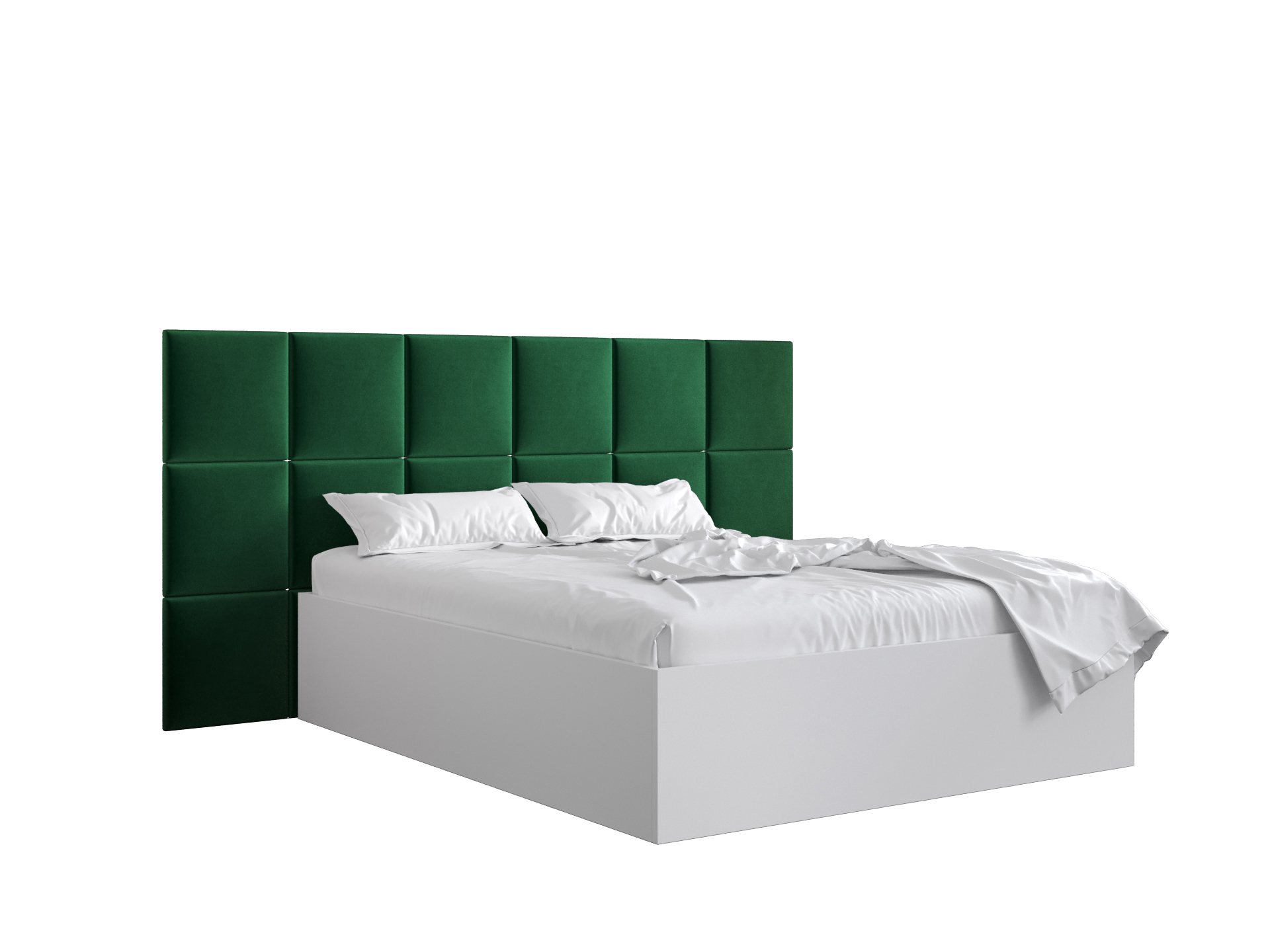Pat matrimonial cu tăblie tapițată 160 cm Brittany 4 (Alb mat + verde) (cu somieră)